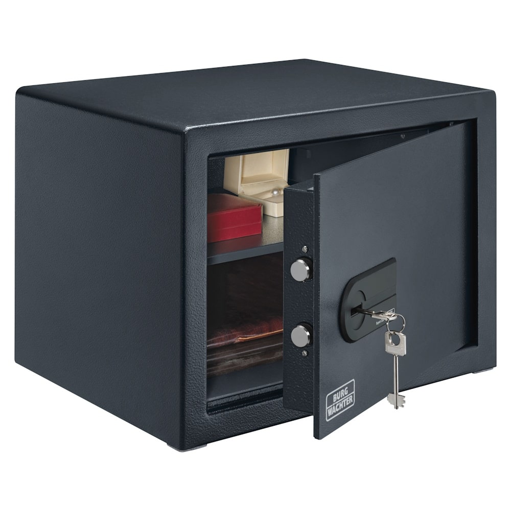 Der Burg Wächter EXS 320 K ist der ideale kompakte Tresor für Zuhause oder das Büro. Er eignet sich perfekt für die Aufbewahrung von Bargeld, Schmuck, Dokumenten, Datenträgern oder sensiblen Unterlagen. Seine doppelwandige Konstruktion, Feuerschutz und stabile Verankerung machen ihn zu einem sicheren Begleiter für den Alltag.