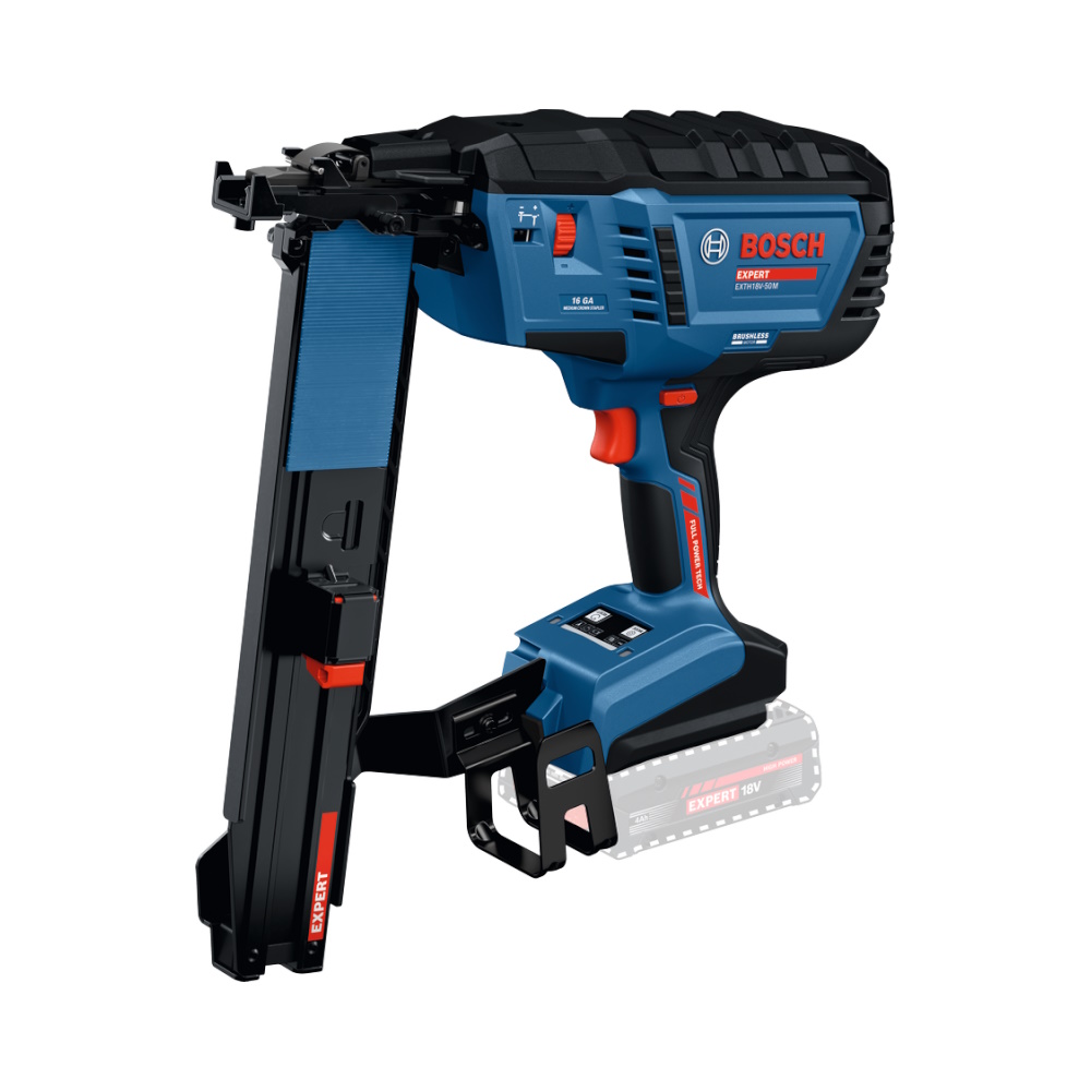 Der Bosch EXPERT EXTH18V 50M Professional ist der weltweit erste Akku-Holzklammerer für Breitrückenklammern, der die volle Leistung eines Druckluftgeräts bietet – ganz ohne Kompressor, Schläuche oder Gaskartuschen. Dank moderner gasloser Schwungradtechnologie kombiniert er maximale Kraft mit geringem Rückstoß und hohem Arbeitskomfort.