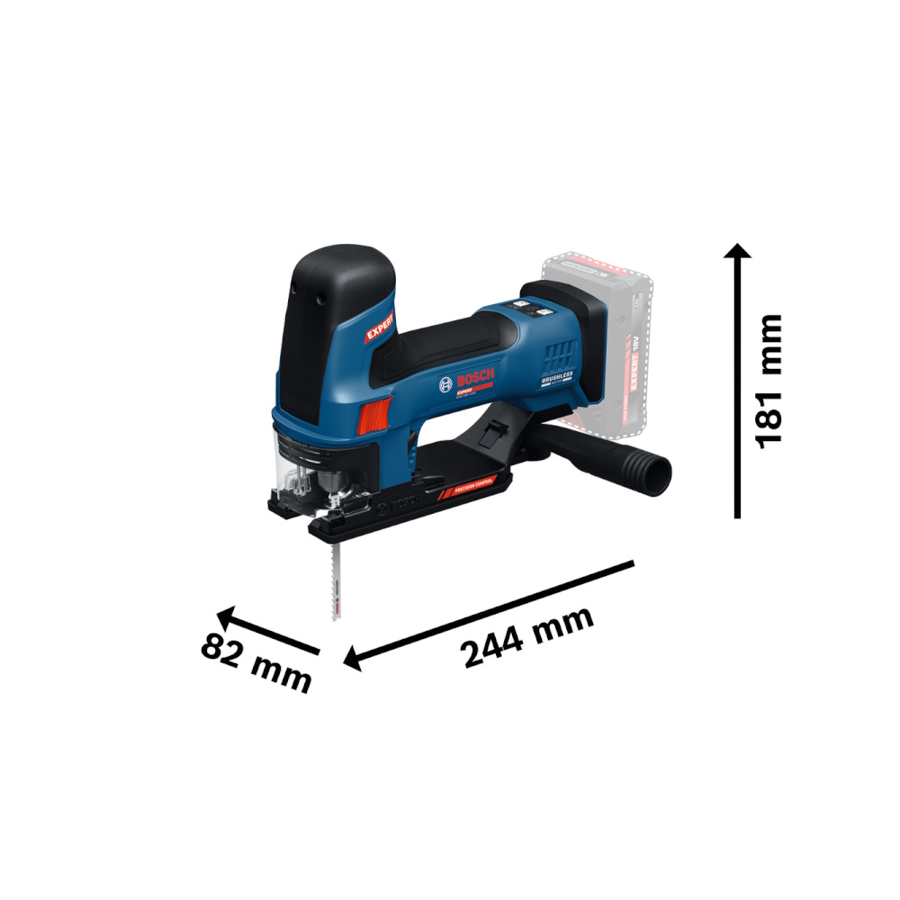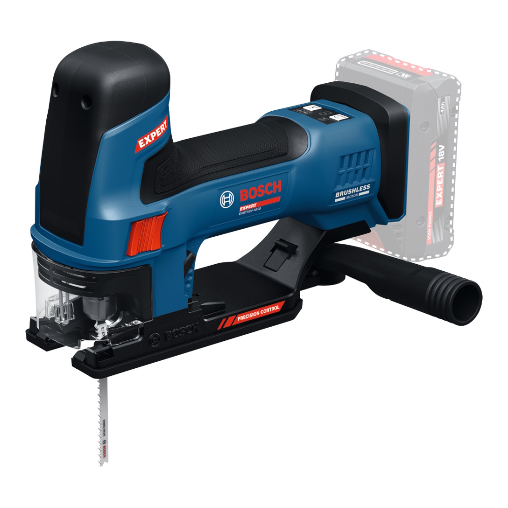 Die Bosch Akku-Stichsäge EXPERT EXST18V-155S steht für maximale Präzision bei Kurven und sauberen Schnitten. Die Sägeblattführung verhindert das Verlaufen des Blatts selbst bei engen Radien, während Precision Control mit 360°-Greifmöglichkeit für optimale Kontrolle sorgt, auch beim Sägen über Kopf. Für zusätzliche Sicherheit schaltet Drop Control das Werkzeug bei einem Sturz sofort ab. Die flexibel positionierbare Staubabsaugung unterstützt dabei ein sauberes Arbeiten.