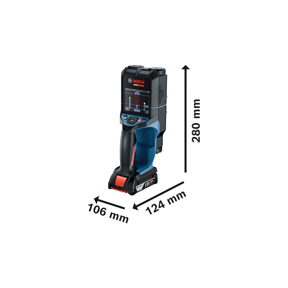 Der Bosch EXPERT D-tect18V-200-17C ist ein leistungsstarker Wandscanner für präzises Orten von verborgenen Objekten in Wänden, Decken und Böden. Dank Bosch Radartechnologie und KI gestützter Objekterkennung erkennt das Gerät Metalle, Leitungen, Rohre und Holzunterkonstruktionen bis zu 200 mm Tiefe und hilft dabei, Bohrschäden und Sicherheitsrisiken zu vermeiden. Die 3D Bildgebungsfunktion liefert eine leicht verständliche Wandübersicht, während USB C und SD Karte die Dokumentation direkt auf der Baustelle erleichtern.