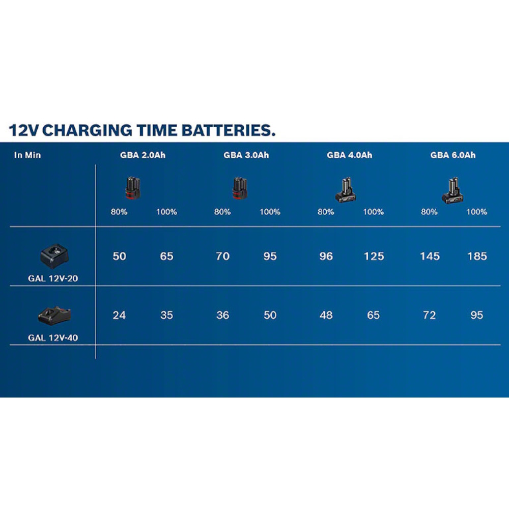 • Sehr kurze Ladezeiten für alle Bosch Professional 12V Akkus