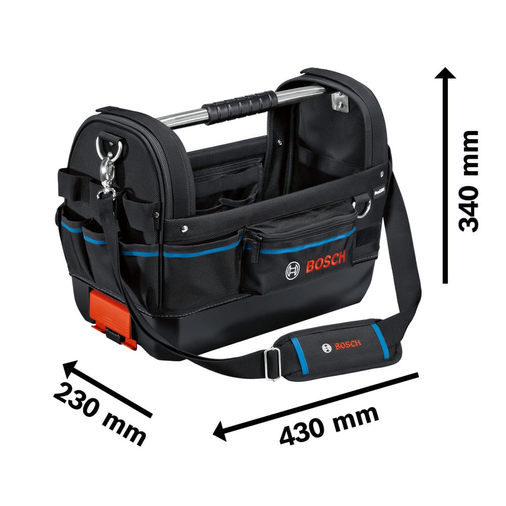Die Bosch Professional Werkzeugtasche GWT 20 ist eine offene, besonders robuste Werkzeugtasche für schnellen Zugriff und komfortablen Transport. Dank integrierter Befestigungsklemmen lässt sie sich sicher mit der L-BOXX verbinden. Mit vielseitigen Fächern, ProClick Befestigungsschlaufen und widerstandsfähigem Boden ist sie ideal für die tägliche Baustellenorganisation.