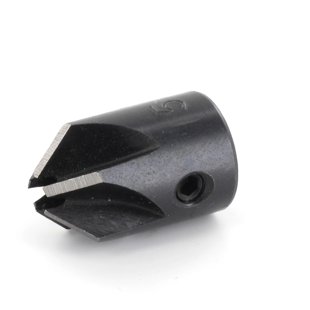 Unser 5-schneidiger Aufsteckversenker mit einem Spitzenwinkel von 90° ist die ideale Lösung für präzises Bohren und Senken in einem Arbeitsgang. Dieser Versenker lässt sich mühelos auf Holzspiralbohrer des entsprechenden Durchmessers aufstecken und kommt inklusive Sechskantschlüssel (ohne Spiralbohrer). Perfekt geeignet für Weichholz, furnierte Platten und in gewissem Maße auch für europäisches Hartholz.