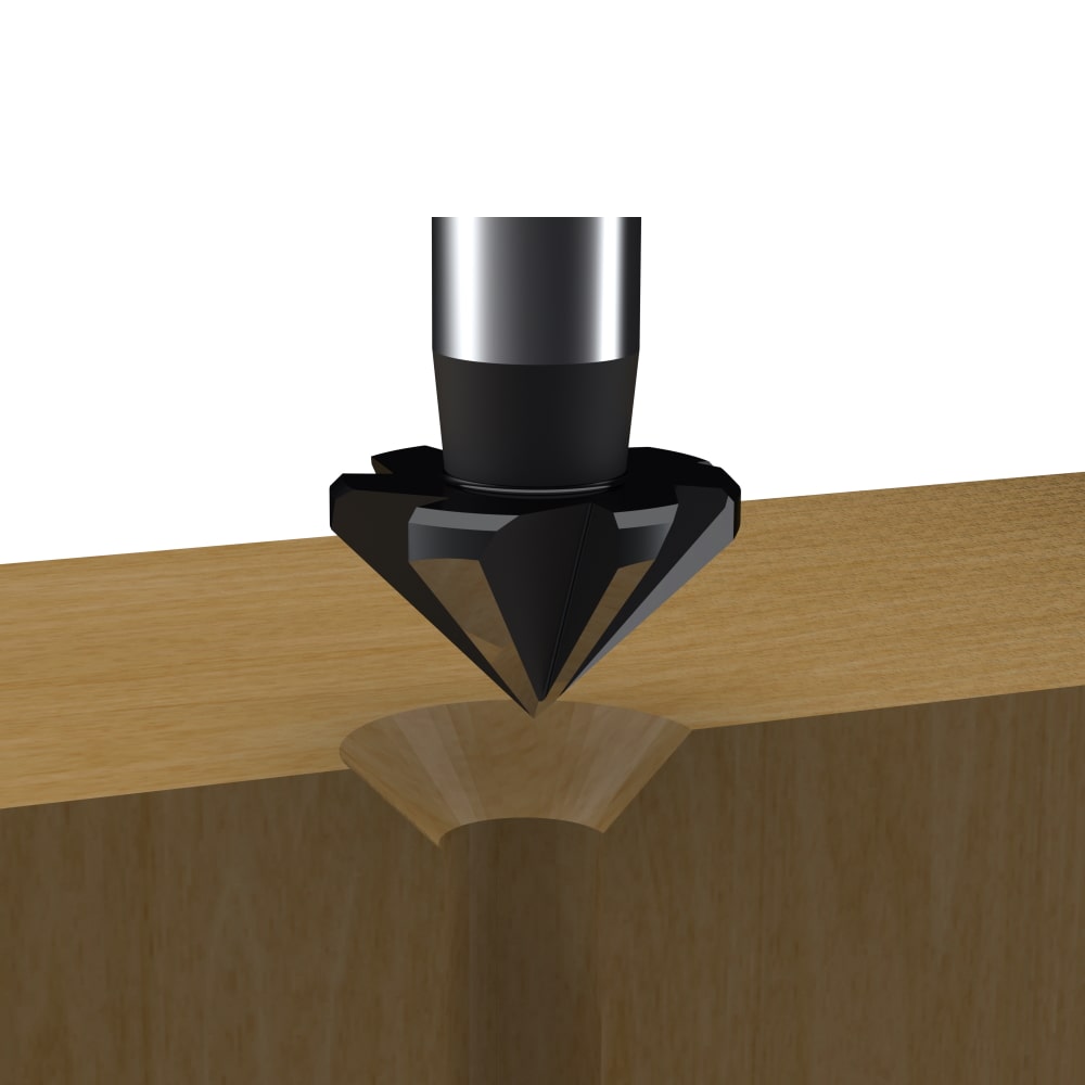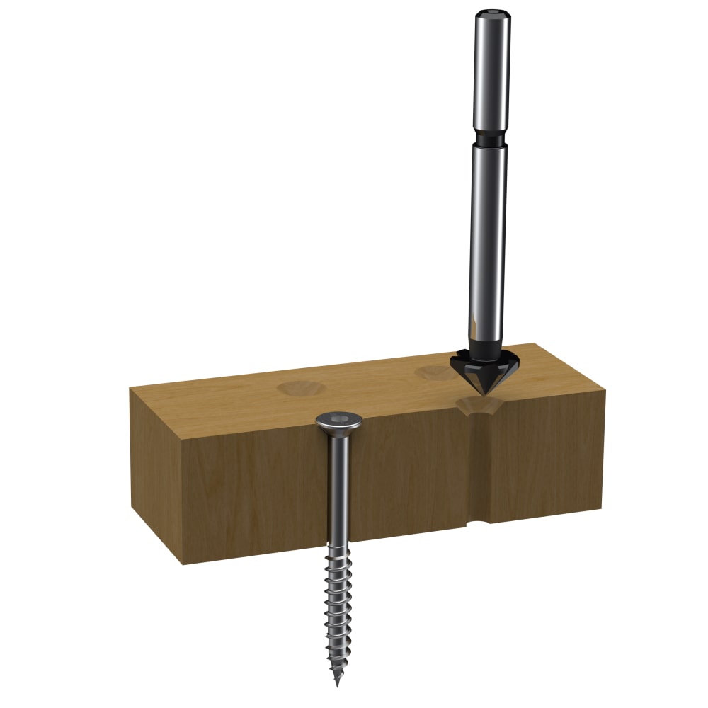 Unser 7-schneidiger Versenker mit einem Spitzenwinkel von 90° garantiert feinste Ergebnisse beim Senken von Bohrungen. Der ungleich geteilte, vollgeschliffene Werkzeugkopf sorgt für ratterfreies Arbeiten, selbst in Weichholz. Dieses hochwertige Werkzeug ist ideal für alle Holzarten, furnierte und beschichtete Platten sowie diverse Kunststoffe wie Acryl/Plexiglas, Corian®, GFK, HPL-Beschichtungen, Polycarbonat, PVC und Trespa®.