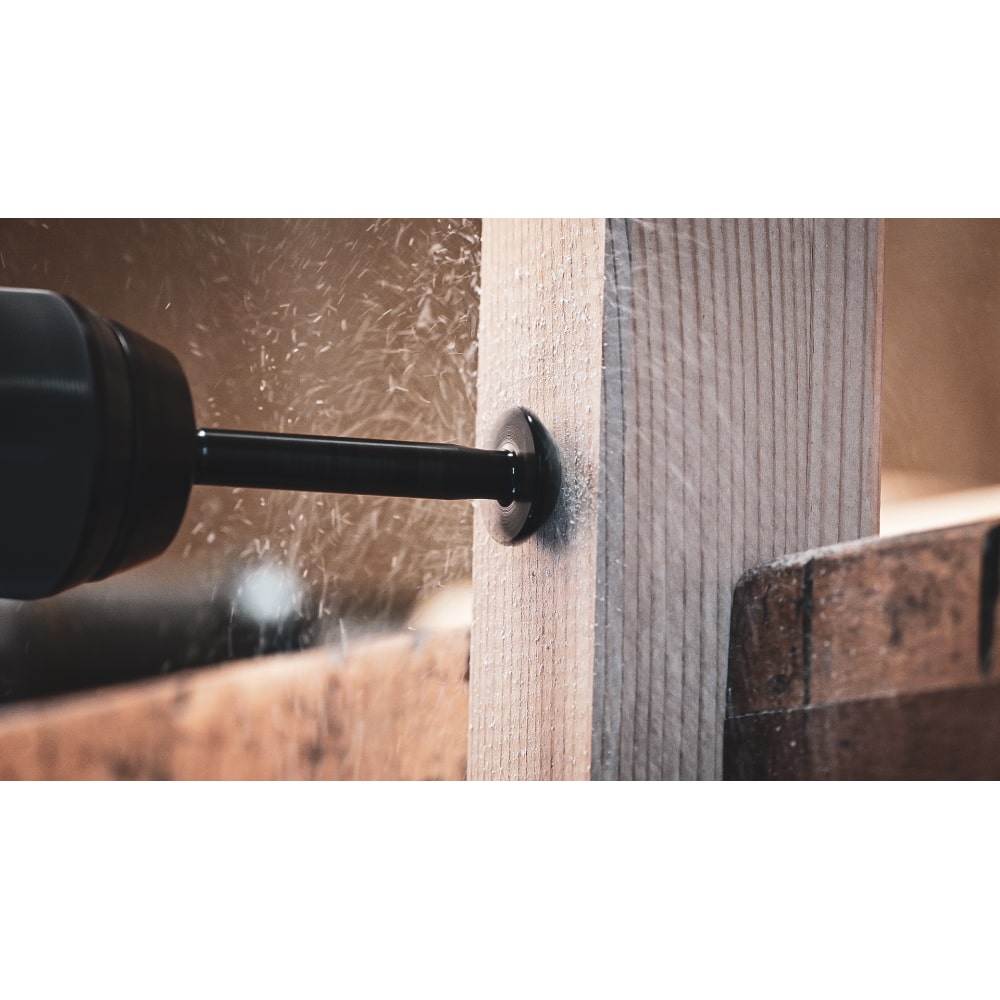 - Ratterfreies Arbeiten: Besonders ausgeklügelte Kopfteilung für gleichmäßiges Senken in Weichholz.