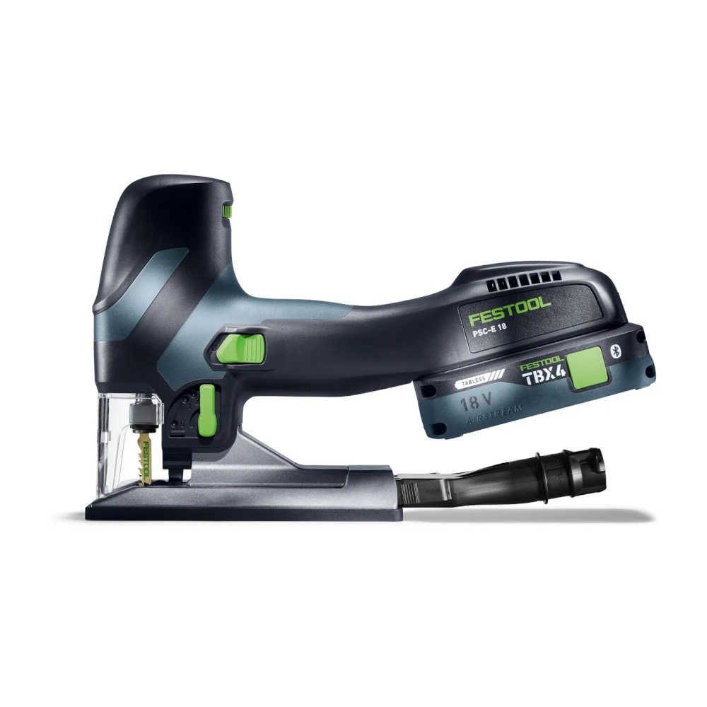 Die Festool Akku Stichsäge PSC E 18 EB Basic ist eine kompakte und leistungsstarke 18V Stichsäge für präzise, rechtwinklige Schnitte im Montage- und Innenausbau. Durch ihre reduzierte Bauweise und das geringe Gewicht eignet sie sich ideal für kontrolliertes Arbeiten bei typischen Anwendungen in Holz und Metall.