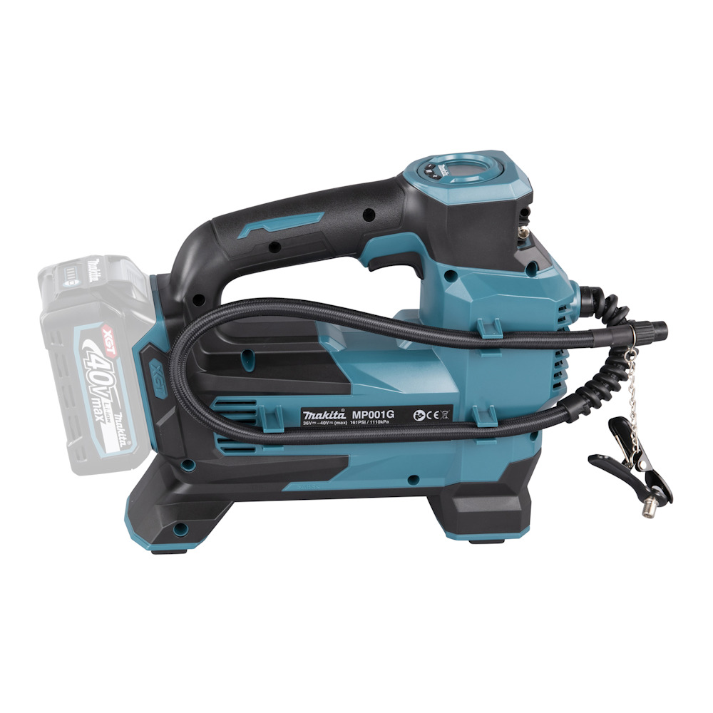Der Makita MP001G Akku-Kompressor aus dem leistungsstarken 40V max XGT System ist die ideale Lösung zum schnellen und komfortablen Befüllen von Reifen, Bällen, Schwimmreifen und vielem mehr. Mit einer maximalen Fördermenge von 24,0 l/min und einem Druck von bis zu 11,1 bar eignet sich das Gerät auch für größere Reifen an Traktoren oder Nutzfahrzeugen.