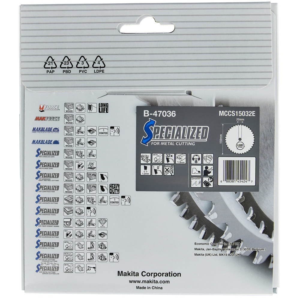Produktinformationen "Makita Kreissägeblatt Metall Stahl Akku-SPECIALIZED 150x20x32Z - B-47036"