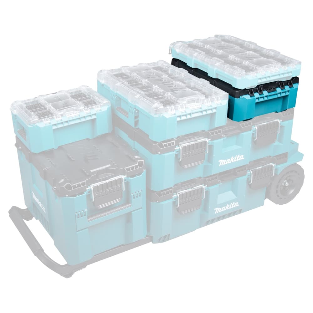 Die Makita MAKTRAK Werkzeugbox M P-91039 ist die kompakte und robuste Lösung für Werkzeuge, Zubehör und Kleinteile. Mit 18,41 Litern Stauraum und einer Tragkraft von bis zu 34 kg eignet sie sich ideal für den mobilen Einsatz auf der Baustelle oder als Modul innerhalb des MAKTRAK Systems.