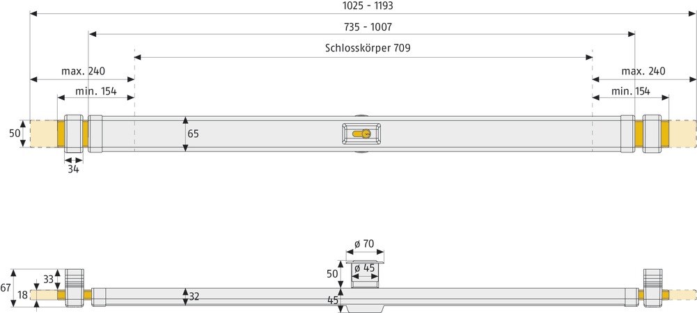 - Beide Riegel greifen fest in die mit dem Mauerwerk verankerten Schließkästen ein