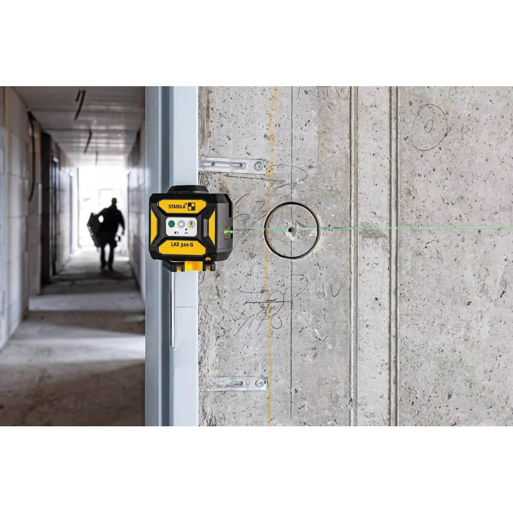Der STABILA LAX 320 G GreenBeam ist die perfekte Lösung für präzise Ausrichtarbeiten im Innenbereich – robust, vielseitig und extrem gut sichtbar, selbst bei hellen Lichtverhältnissen.
