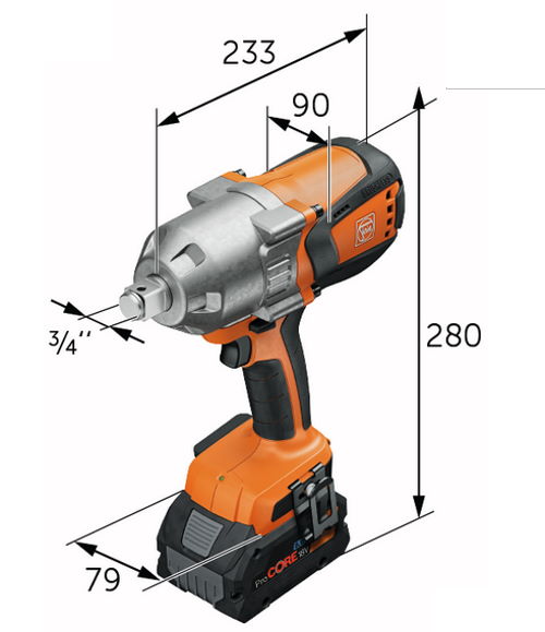 - 3/4" Außenvierkant zur Aufnahme von Schlagnüssen.