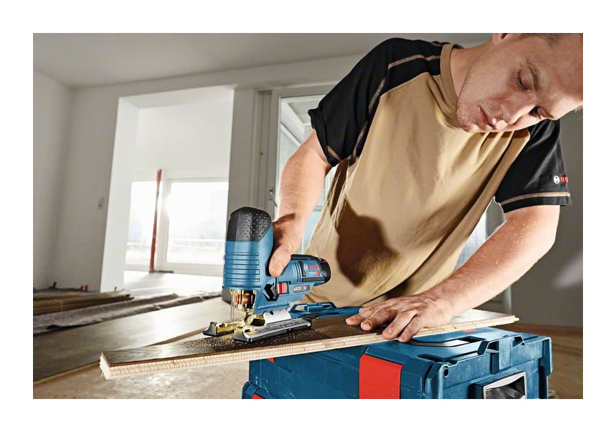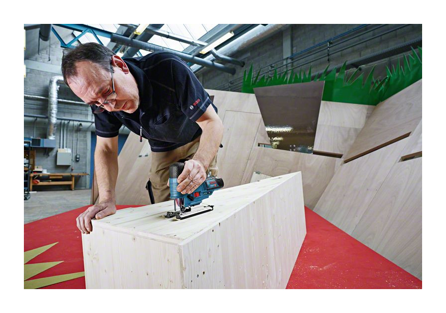 Akku-Stichsäge GST 12V-70. Kompakte Stichsäge in Stabform im 12-Volt-Segment. Stabform. Kompaktheit und Leichtbauweise sorgen für bestmögliche Wendigkeit selbst bei Schnitten von unten. Griff der Stichsäge extrem nah an der Schnittlinie, was für eine perfekte Handhabung während der Benutzung sorgt. Werkzeugloses Bosch SDS-System für problemlose Sägeblattwechsel. Optimierte Bauform für komfortables Sägen von unten. Besonders geringer Griffumfang für komfortables und ermüdungsarmes Arbeiten. Robuste Aluminiumfußplatte mit Kunststoffsohle für bessere Gleiteigenschaften und zum Schutz empfindlicher Oberflächen. Hervorragende Sicht auf die Schnittlinie dank zuschaltbarer, heller LED. Electronic Motor Protection (EMP) schützt den Motor vor Überlastung und sorgt für lange Lebensdauer. Bosch Electronic Cell Protection (ECP): Schützt den Akku vor Überlastung, Überhitzung und Tiefentladung. Ergonomischer Stabgriff mit großflächigen Softgrip-Auflagen für komfortables Arbeiten. 3-Stufen-Pendelung für ausrissfreie Schnitte. Akku und Ladegerät nicht im Lieferumfang enthalten. Solo Version, Absaug-Set, Gleitschuh, L-BOXX 102 (1 600 A00 1RP), L-BOXX-Einlage, Spanreißschutz, 1 x Stichsägeblatt T 144 D, Speed for Wood (separat erhältlich als 3er-Pack: 2 608 630 560), 1 x Stichsägeblatt T 308 B, Extra-Clean for Wood (separat erhältlich als 3er-Pack: 2 608 663 750).