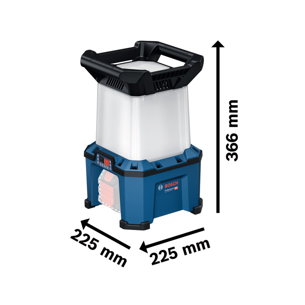 Ideal zur großflächigen Beleuchtung von Innenräumen, Baustellen oder Werkstätten – besonders dort, wo keine feste Beleuchtung vorhanden ist. Der Hybridstrahler funktioniert sowohl kabelgebunden als auch mit allen Bosch Professional 18V-Akkus.