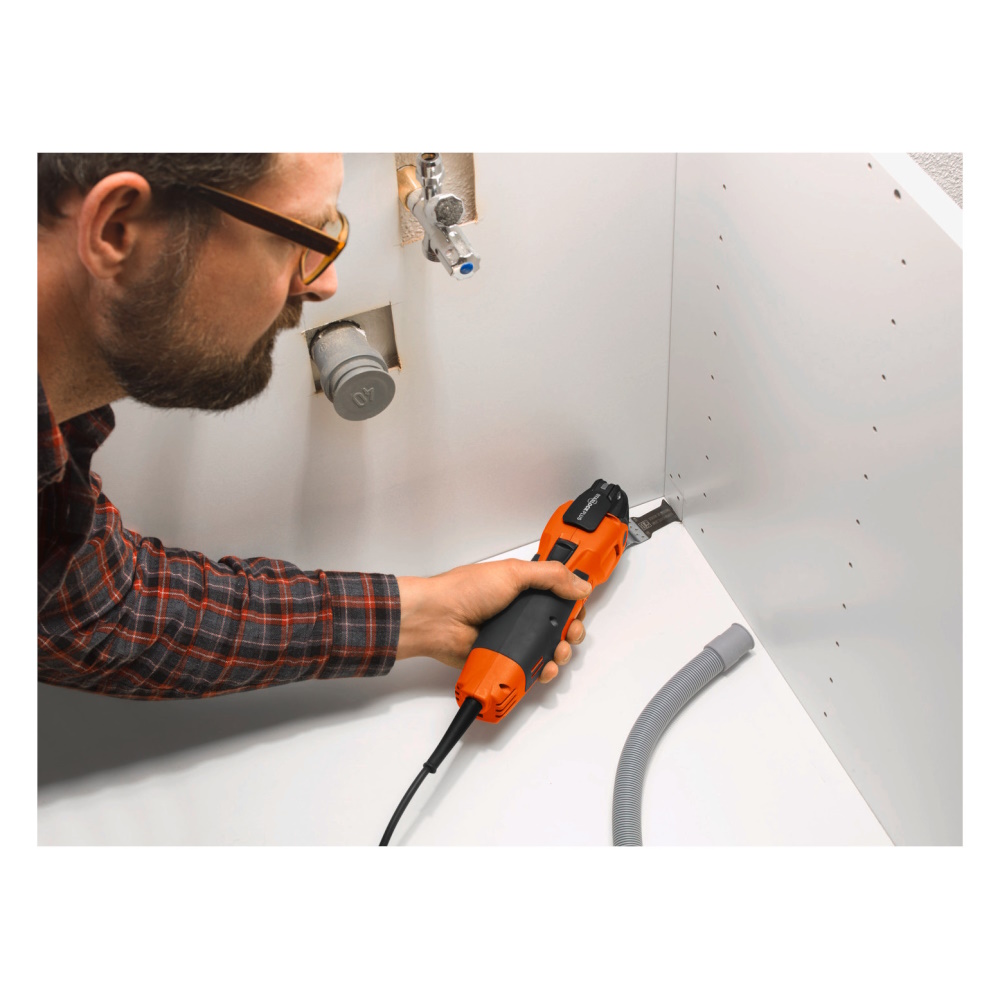 Dank 350-Watt-Hochleistungsmotor, StarlockPlus-Werkzeugaufnahme und dem Anti-Vibrationssystem arbeitet das Gerät kraftvoll, vibrationsarm und angenehm leise. Das patentierte QuickIN-Schnellspannsystem ermöglicht werkzeuglose Zubehörwechsel in unter drei Sekunden.