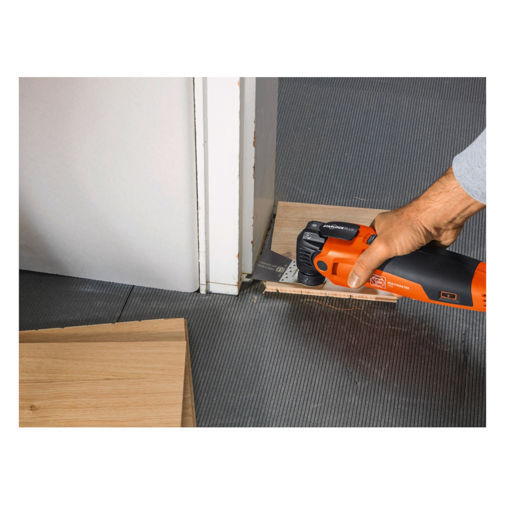 Der Fein MULTIMASTER MM 500 ist das leistungsstarke Multifunktionswerkzeug für schnellen Arbeitsfortschritt bei Ausbau- und Renovierungsarbeiten. Mit dem umfangreichen Zubehörset lassen sich Holz und Metall sägen, schleifen, Fliesenfugen entfernen und viele weitere Arbeiten präzise und effizient ausführen.