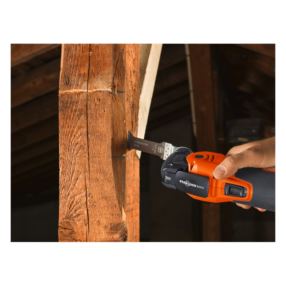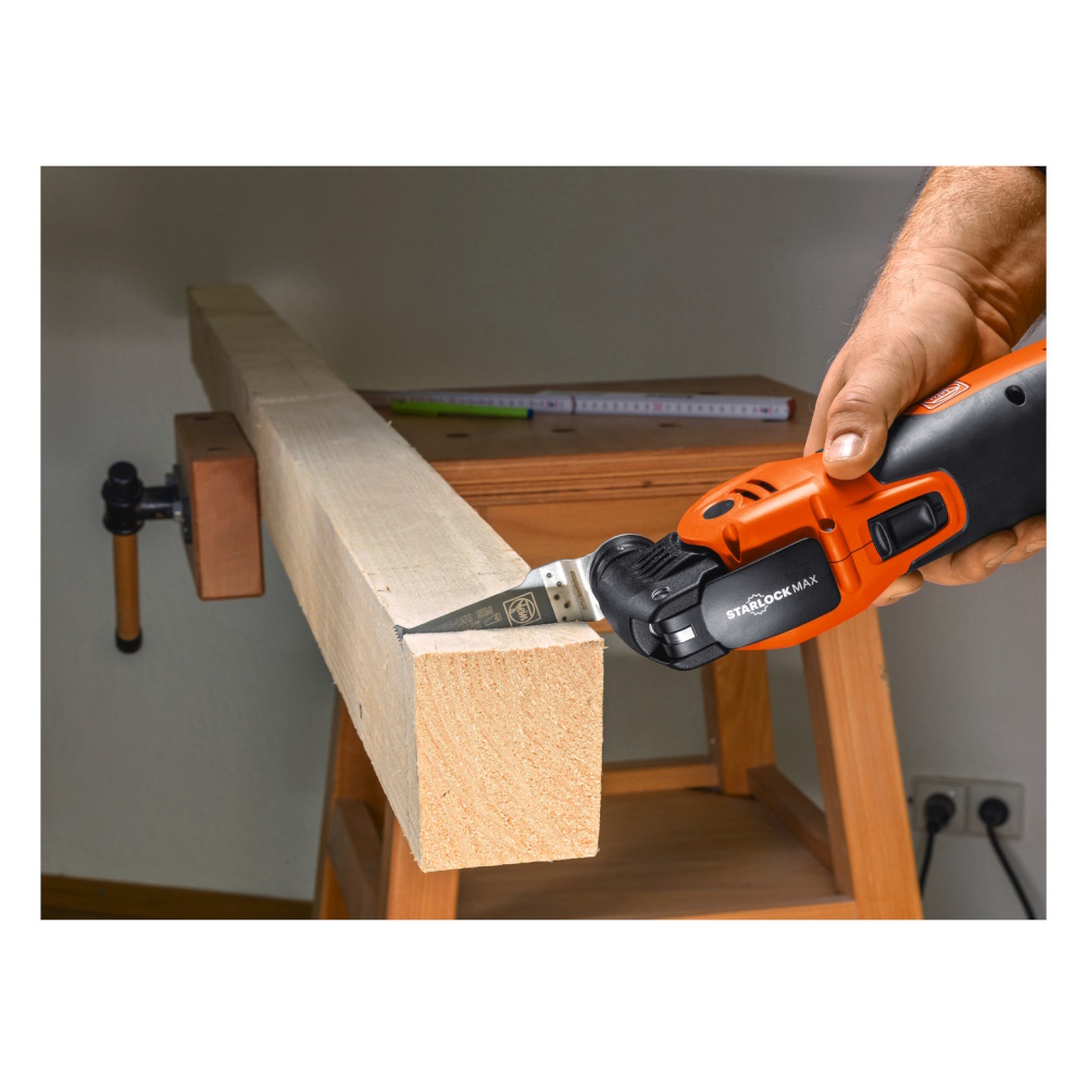 Dank 450-Watt-Hochleistungsmotor, StarlockMax-Werkzeugaufnahme und dem Anti-Vibrationssystem arbeitet das Gerät extrem kraftvoll, präzise und komfortabel. Das patentierte QuickIN-Schnellspannsystem ermöglicht werkzeuglose Zubehörwechsel in weniger als drei Sekunden.