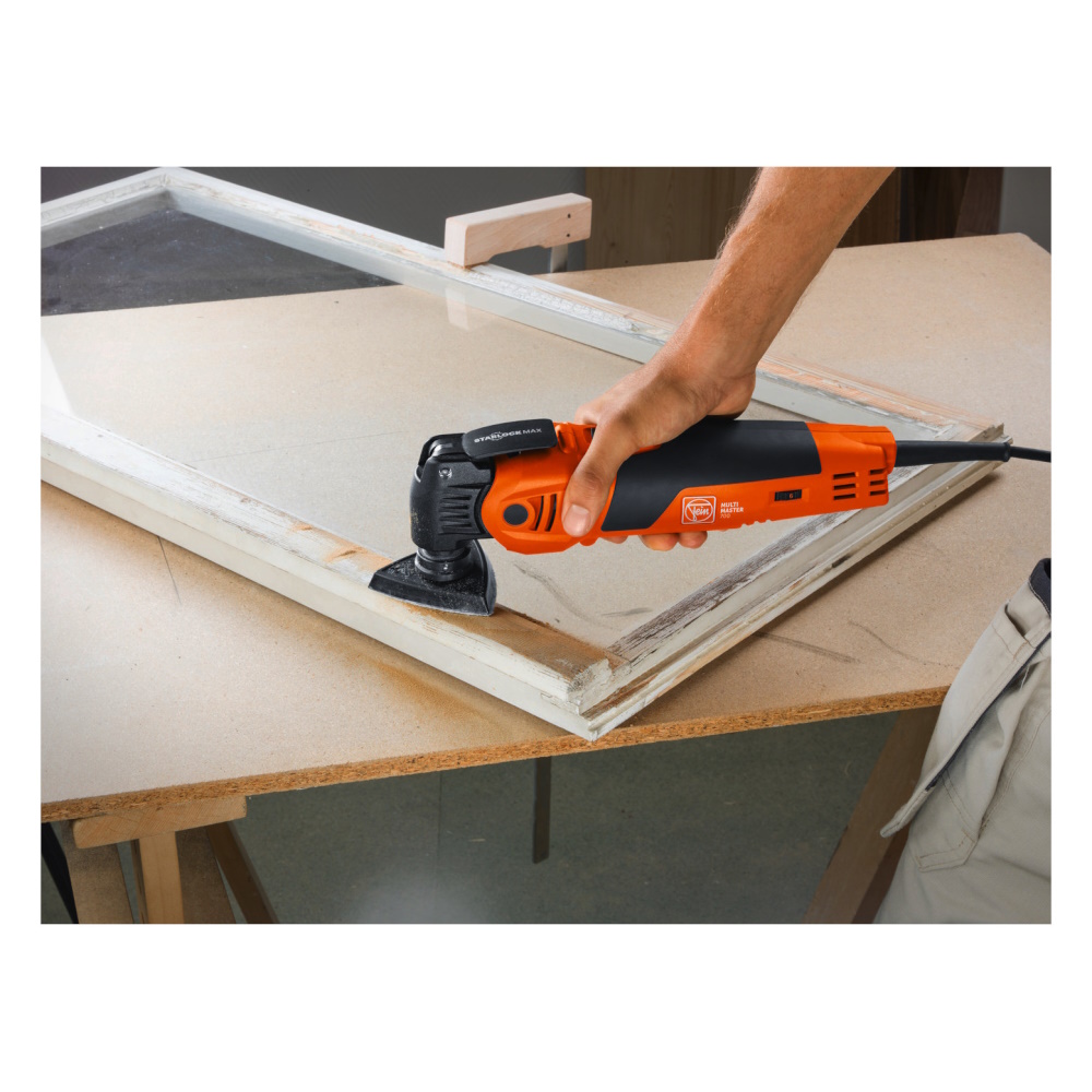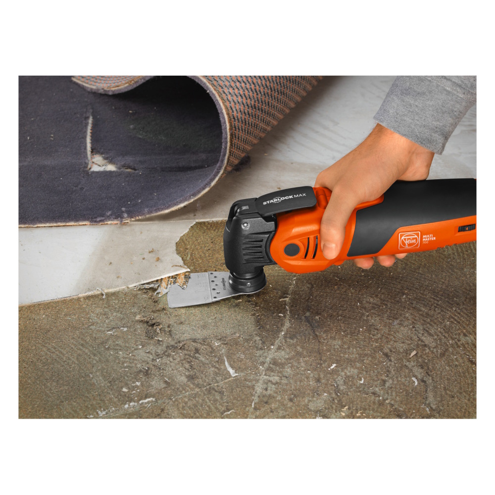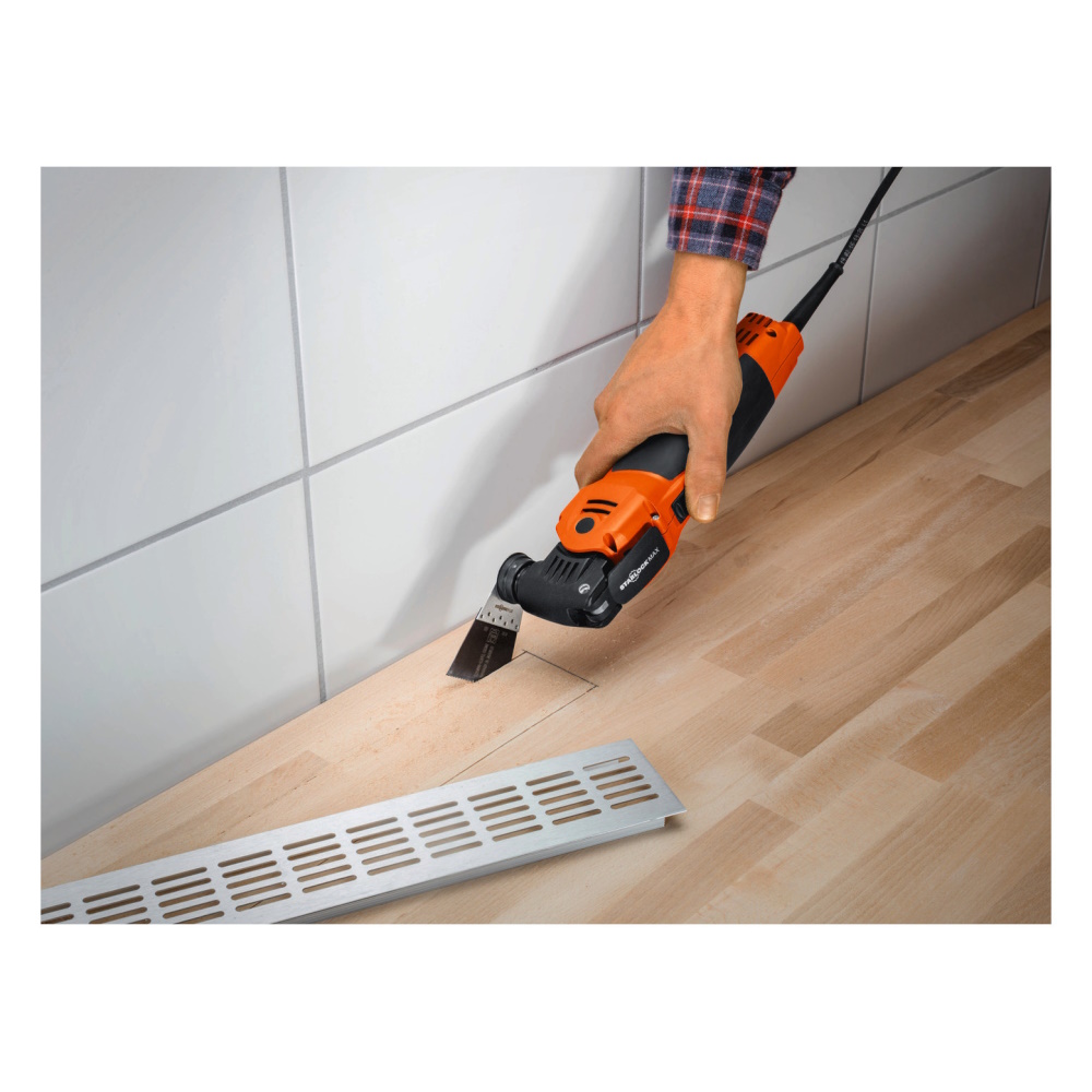 Der Fein MULTIMASTER MM 700 ist das leistungsstärkste Multifunktionswerkzeug der Fein-Reihe und die ideale Wahl für schnellsten Arbeitsfortschritt bei Ausbau- und Renovierungsarbeiten. Mit 60 hochwertigen Zubehören ist dieses MultiTool vielseitig einsetzbar – zum Sägen in Holz, Metall und Kunststoffe, Austrennen von Fliesen, Schneiden von Silikonfugen und Teppichen, Entfernen von Kleberesten sowie zum Abtragen von Fliesenkleber.