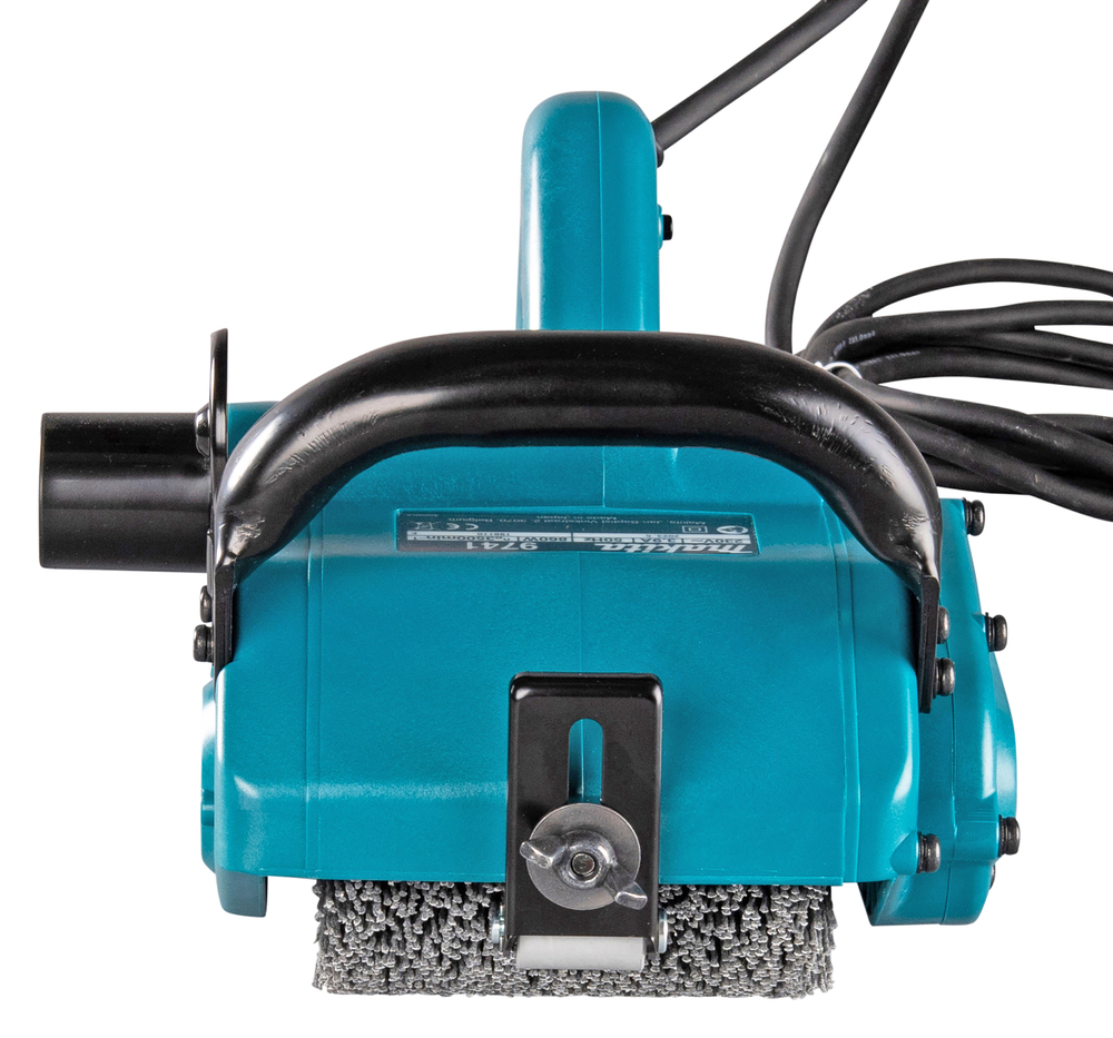 Ein effizienter 860 W Bürstenschleifer zum Schleifen, Strukturieren, Säubern und Polieren mit Stahl- und Nylonbürsten. Geeignet für schnelle Rostentfernung. Einstellbare Schleiftiefe und leichter Bürstenwechsel.