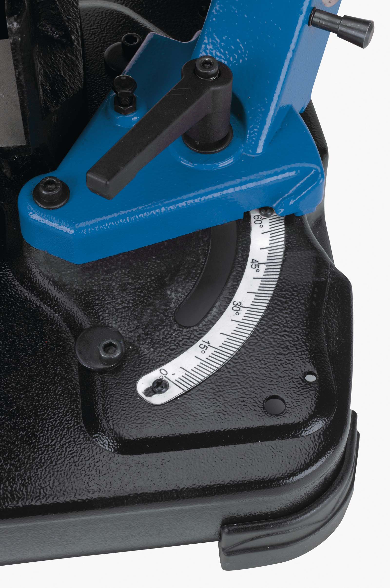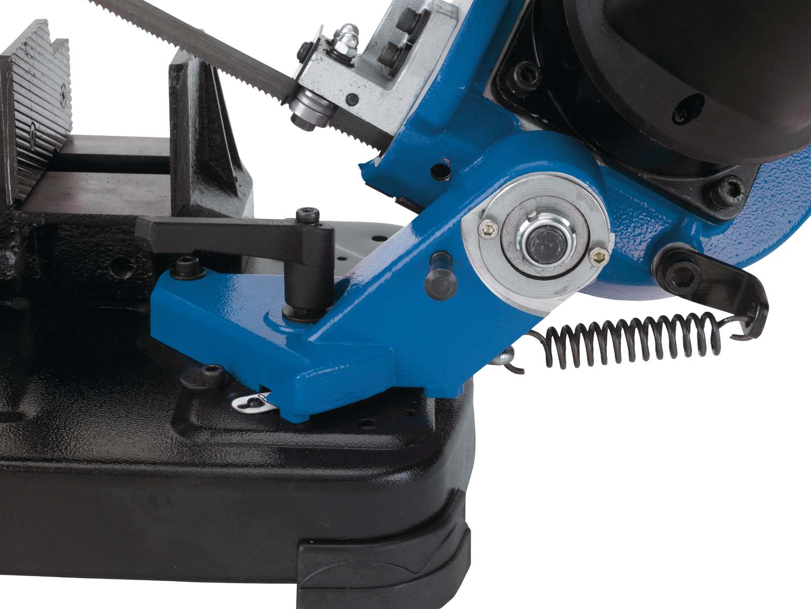 - Massiver Sägebügel aus Aluminium-Druckguss (nachjustierbar ab MBS 125) und mit stabiler Transportsicherung