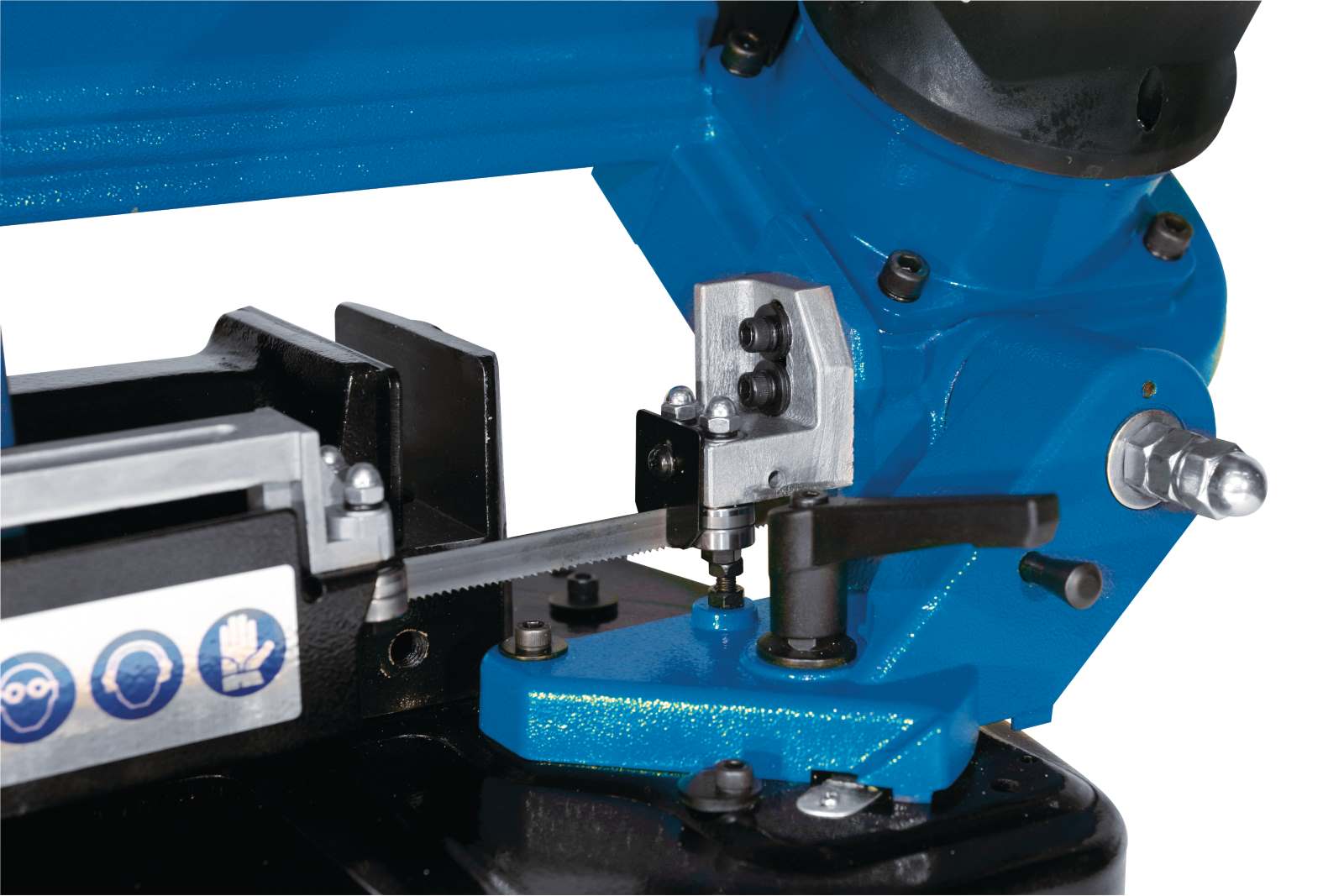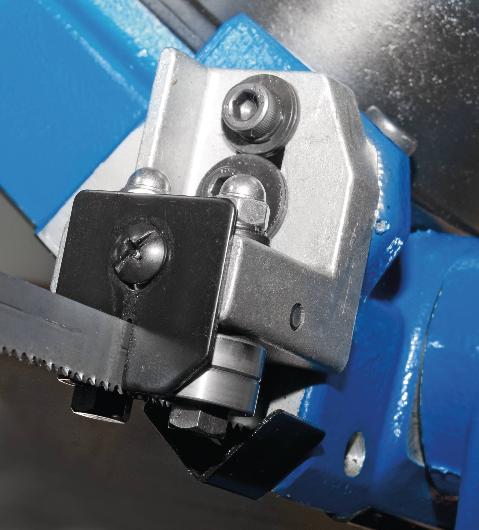 - Zwei bewegliche, einstellbare Sägebandführungen mit Späneabstreifer aus Metall