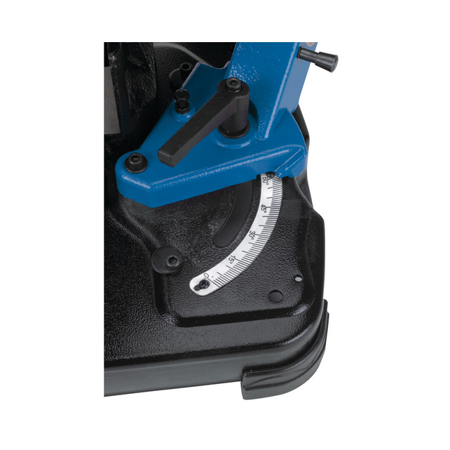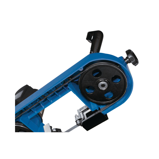 - Massiver Sägebügel aus Aluminium-Druckguss (nachjustierbar ab MBS 125) und mit stabiler Transportsicherung