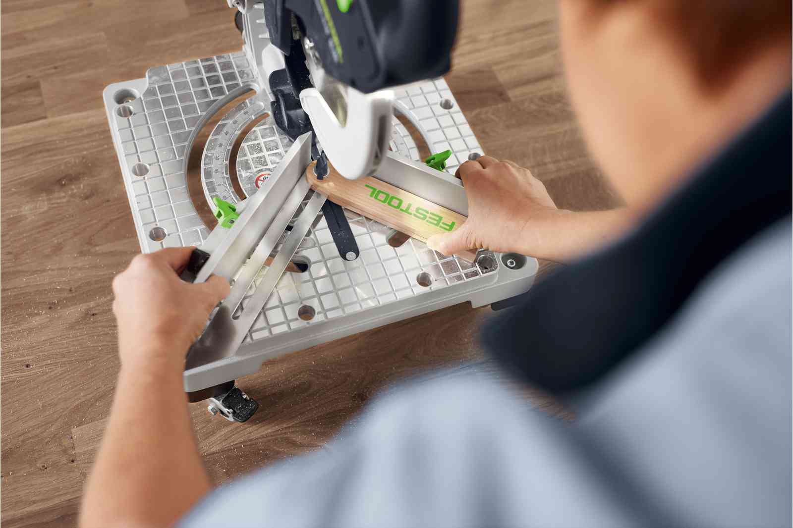 • Exakt winkelhalbierend: Symmetrisch laufendes Anschlagsystem für passende Leisten in jedem Winkel