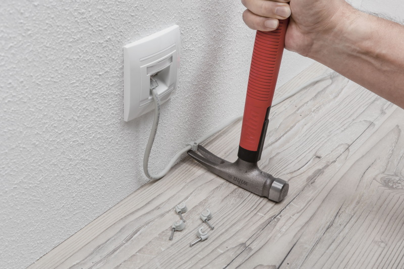 Steigert Ihre Arbeitsqualität: Flacher Boden des Hammerstiels ermöglicht beschädigungsfreies Platzieren von Kabeln und Dübeln.