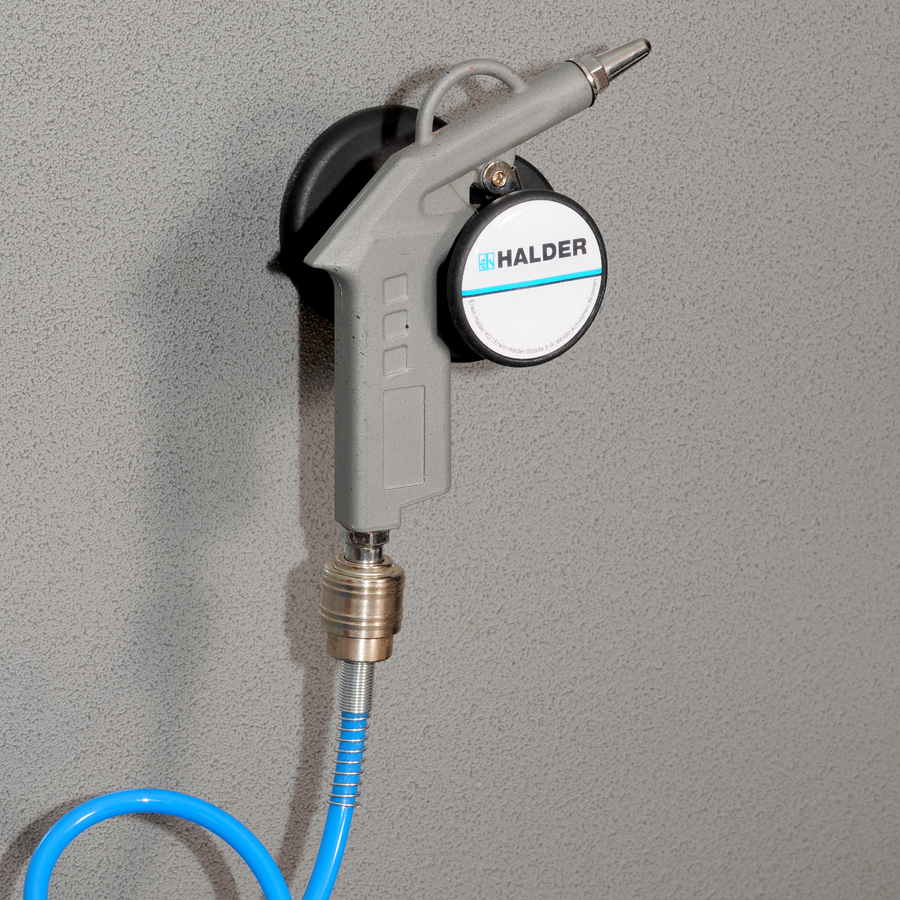 Der Magnethalter von Halder ist eine multifunktionale und flexibel einsatzbare Halterung u.a. für Blaspistolen, Kabel, Schläuche, Kleidung, Absperrbänder und vieles mehr. Die Utensilien lassen sich leicht befestigen/aufhängen, ohne dass der Halter angeschraubt werden muss.