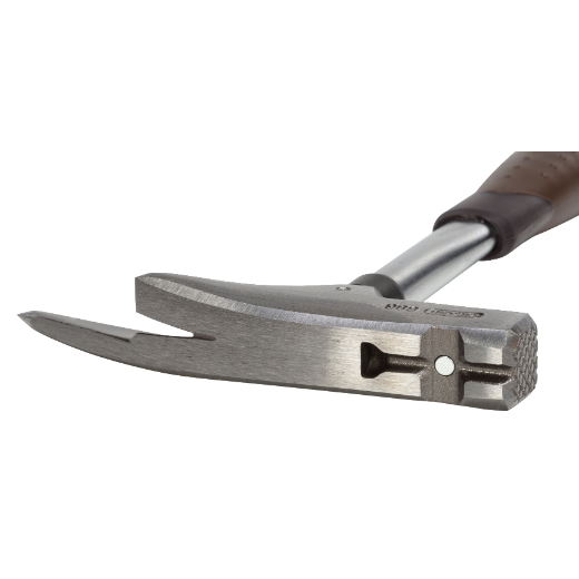 Ein sorgfältig ausgeformter, geschmiedeter Hammerkopf, sitzt unverrückbar auf einem nahtlosen Rohr aus Spezialstahl.