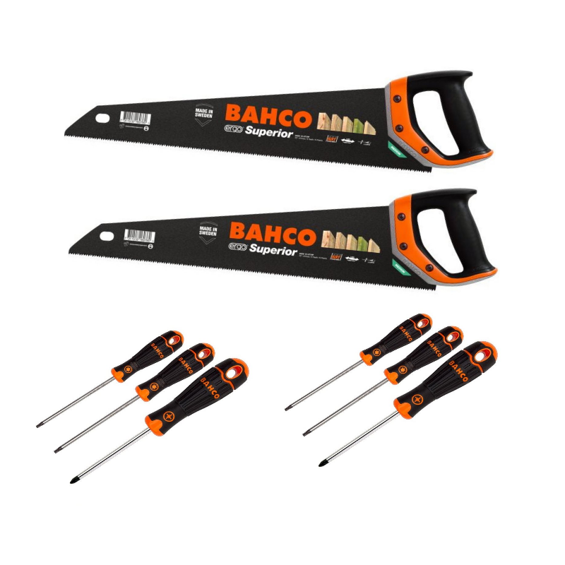 2x BAHCO Säge Fuchsschwanz 475 mm 2600-19-XT-HP ERGO Superior + 4 Schraubendreher