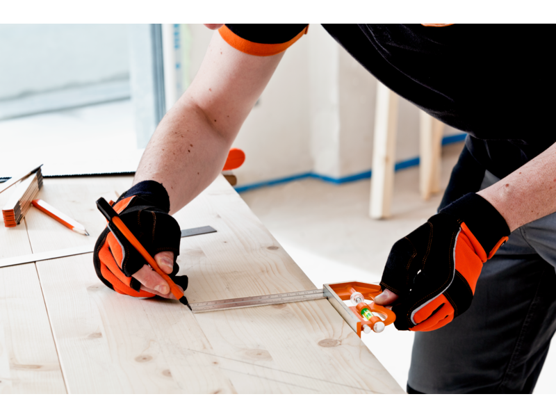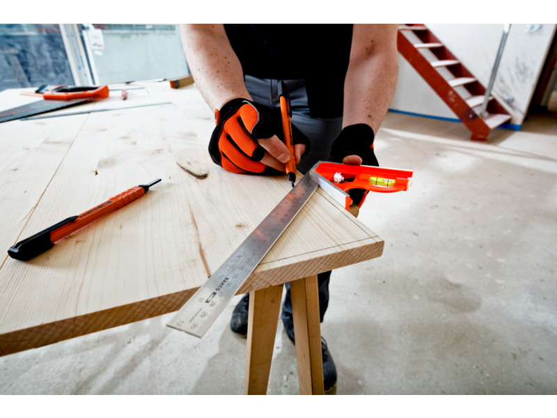 - Eingebaute Libelle für angenähertes Markieren und Reißnadel