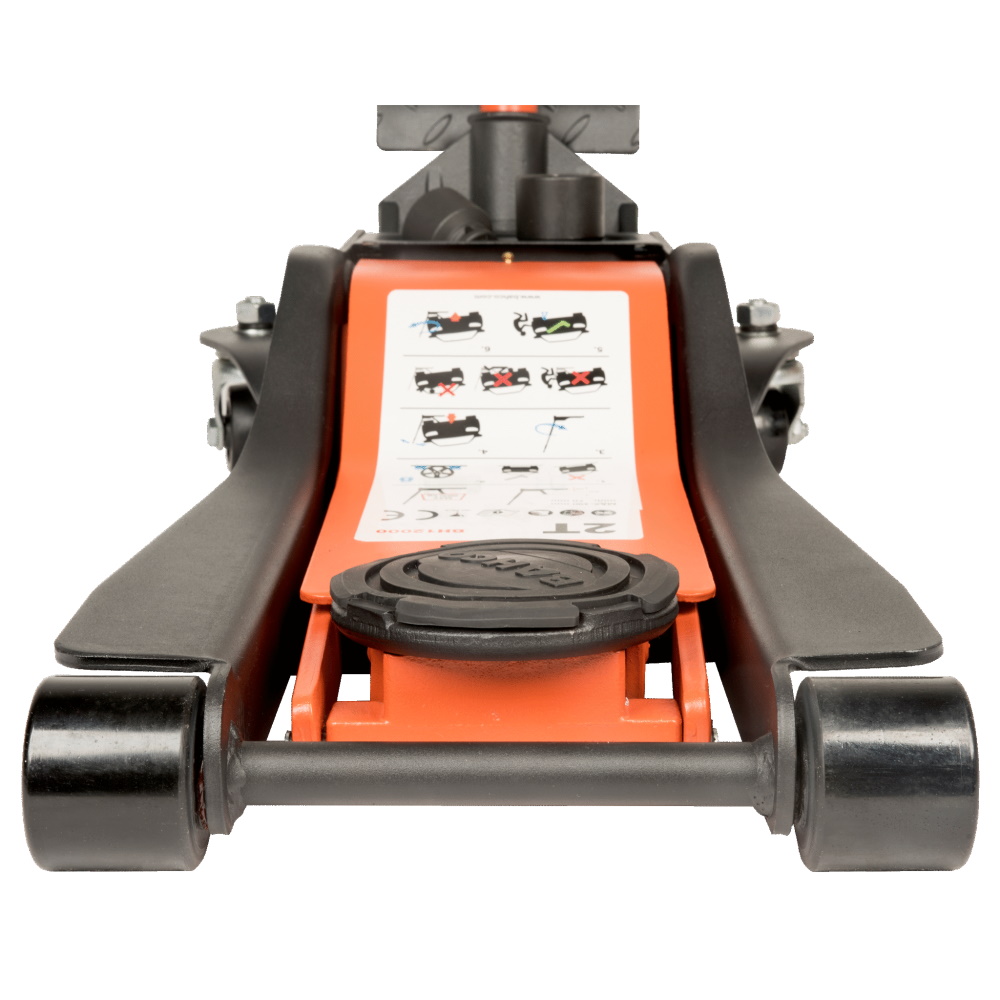 Der Wagenheber mit Doppelkolbensystem hebt Lasten bis zu 50% schneller an als herkömmliche Modelle.