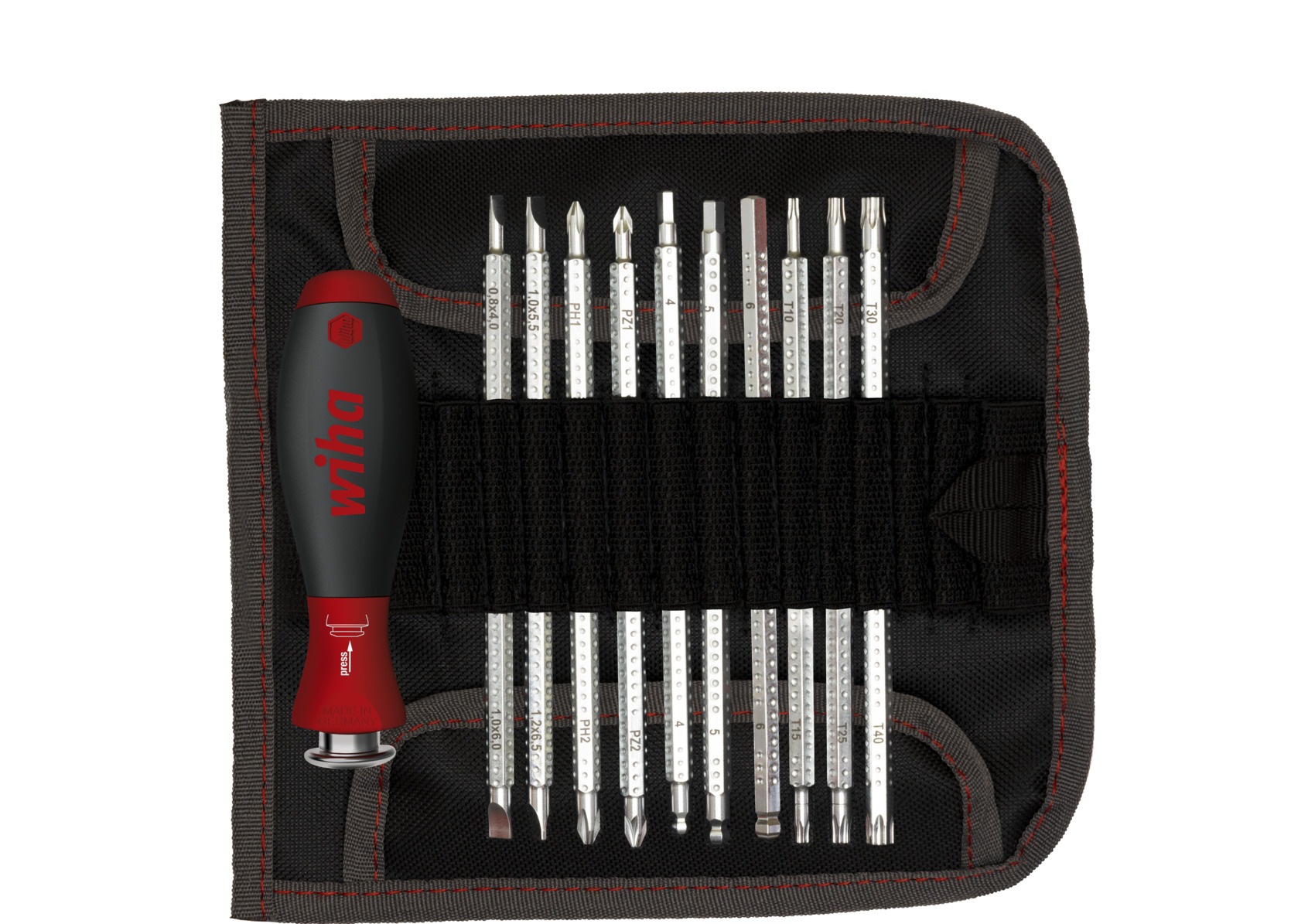 Zum Erreichen tiefliegender Schrauben in Sacklöchern reicht eine Klinge in Standardlänge nicht aus. Abhilfe verschafft das SYSTEM 6 Set - ein platzsparendes, vielseitiges Umsteckwerkzeug. In Kombination mit den SYSTEM 6 Wechselklingen kann das gewünschte Klingenprofil schnell und einfach umgesteckt und die Klingenlänge individuell eingestellt werden. So können mit den SYSTEM 6 Wechselklingen Längen zwischen 42 - 114 mm erreicht werden. Der SYSTEM 6 Griff ist kompatibel mit allen Wiha Wechselklingen SYSTEM 6 (Serie 284). Die Click-Stop Kugelklemmung garantiert einen sicheren Halt der Klingen. Zudem wird der ergonomisch geformte SoftFinish® Griff von Ärzten und Therapeuten empfohlen. Für eine platzsparende Aufbewahrung der Werkzeuge sorgt die robuste Rolltasche.