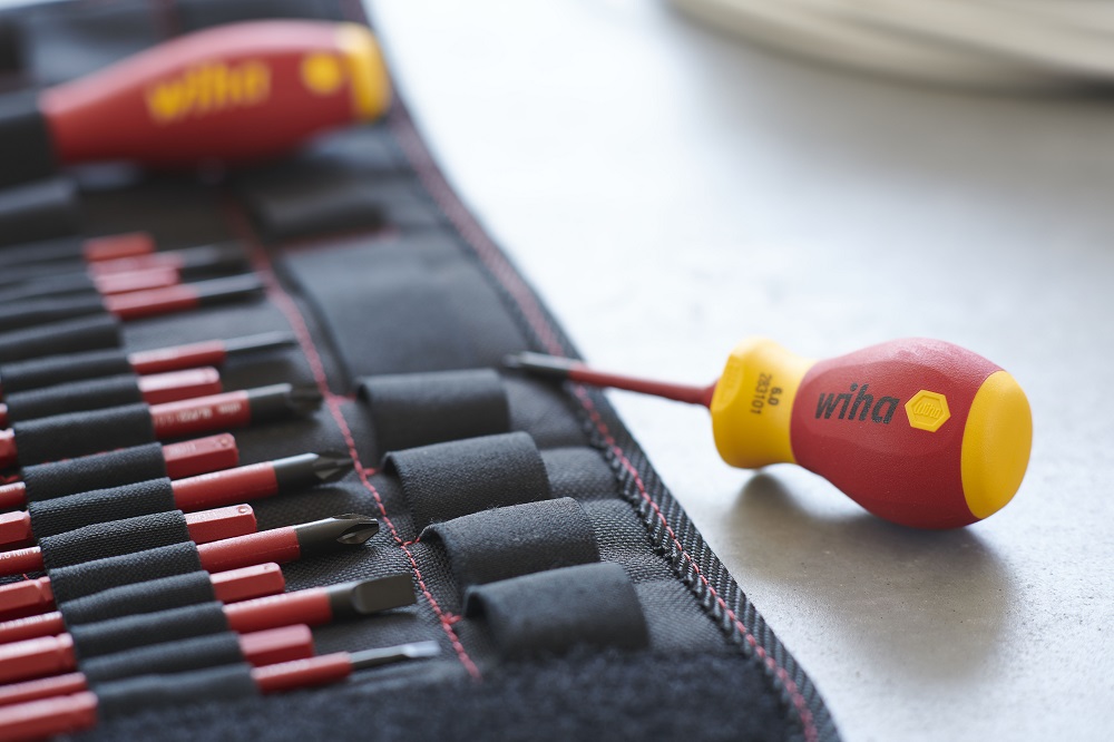 Bei der täglichen Arbeit an spannungsführenden Teilen wird der Elektriker oft mit verschiedenen Schraubprofilen konfrontiert. Mit dem Schraubendrehergriff SoftFinish® inklusive wechselbarer slimBits können gleich mehrere Anwendungen abgedeckt werden, ohne für jedes Profil einen separaten Schraubendreher mitführen zu müssen. Der ergonomisch geformte Schraubendrehergriff mit Abrollschutz liegt zudem gut in der Hand und schont bei der Arbeit Sehnen und Gelenke. Dank der Wiha slimTechnology können die enthaltenen slimBits mit ihrer bis zu 33% schlankeren Klinge auch tiefliegende Schraub- und Federelemente mühelos erreichen. Der isolierte Schraubendrehergriff sowie die slimBits werden gemäß der internationalen Norm IEC 60900 einer Stückprüfung unterzogen und ermöglichen ein sicheres Arbeiten an unter Spannung stehenden Teilen bis 1.000 V AC.