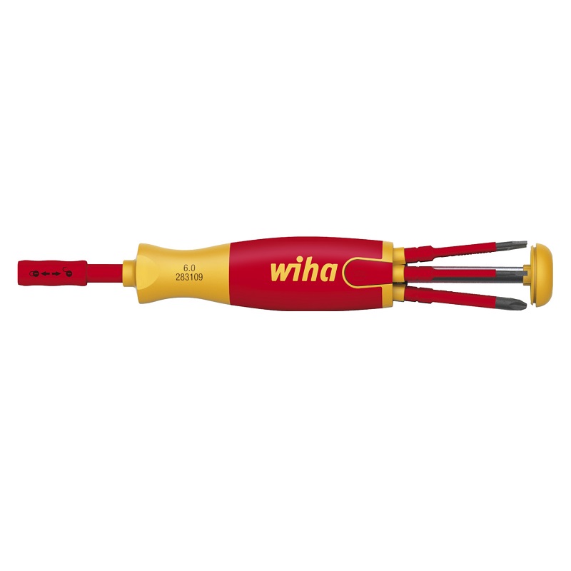 Der Schraubendreher mit Bit-Magazin LiftUp electric ist der ideale Begleiter für jeden Elektriker im mobilen Einsatz. Das im Griff verstaute Bitdepot bietet Platz für 6 gängige simBits und fährt per Knopfdruck aus dem Magaziner heraus. Dadurch wird eine einfache Entnahme der Bits gewährleistet. Der bewährte ClicFix Halter nimmt alle Bits sicher auf und verriegelt sie zuverlässig. Diese Technologie macht den Bitmagaziner zu einem universell einsetzbaren Schraubendreher. Auch in Puncto Sicherheit bietet der Magazin-Bithalter das maximal Mögliche. Sowohl der Magazin-Bithalter als auch die enthaltenen slimBits sind nach der internationalen Norm IEC 60900 zertifiziert. Die schlanken, 75mm langen slimBits gewähren durch die im vorderen Bereich vollständig in den Bit integrierte Schutzisolation einen perfekten Zugriff auf tiefliegende Schraub- oder Federklemmen. Ein weiterer Pluspunkt ist die drehbare Kappe, welche eine komfortable Handhabung gewährleistet.