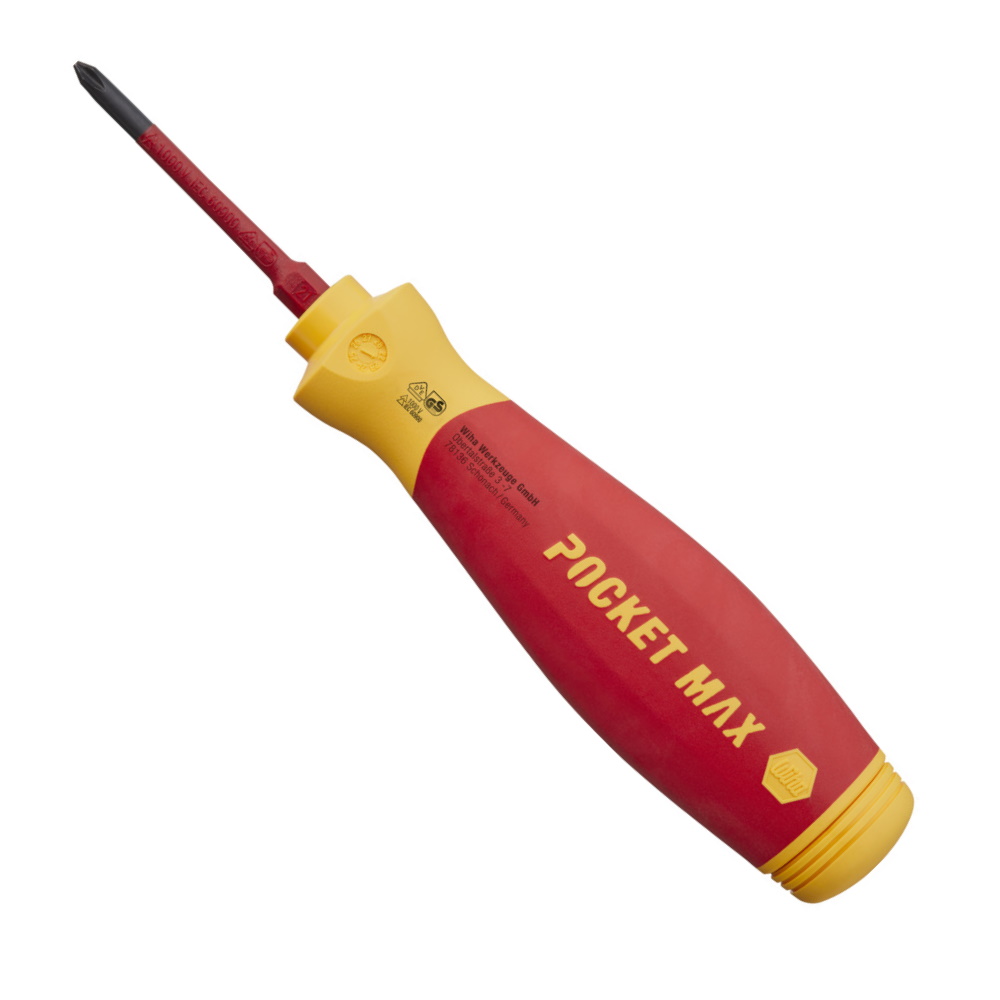Multitools bieten eine wahre Vielfalt, wären sie nicht nur immer so groß und schwer. Der kompakte und leichte PocketMax® von Wiha passt problemlos in jede Hemd- und Hosentasche und ist der ideale Begleiter für jeden Elektriker. Das im Griff sicher verstaute Bitdepot präsentiert sich mit vier slimBits. Dank einer magnetischen Schließfunktion kann das Bitdepot spielend leicht geöffnet werden um die slimBits zu entnehmen. Die Suche nach dem richtigen Bit gehört ab sofort der Vergangenheit an. Beim Verschließen gleitet das Bitdepot zielstrebig und leicht in den Schaft zurück und schließt dank dem Magneten so zu sagen von alleine. Ein weiterer Pluspunkt ist die drehbare Kappe, welche eine komfortable Handhabung gewährleistet. Auch in Puncto Sicherheit bietet der PocketMax® electric das maximal Mögliche. Sowohl der Magazin-Bithalter als auch die enthaltenen slimBits sind nach der internationalen Norm IEC 60900 zertifiziert. Die schlanken, 75mm langen slimBits gewähren durch die im vorderen Bereich vollständig in den Bit integrierte Schutzisolation einen perfekten Zugriff auf tiefliegende Schraub- oder Federklemmen.