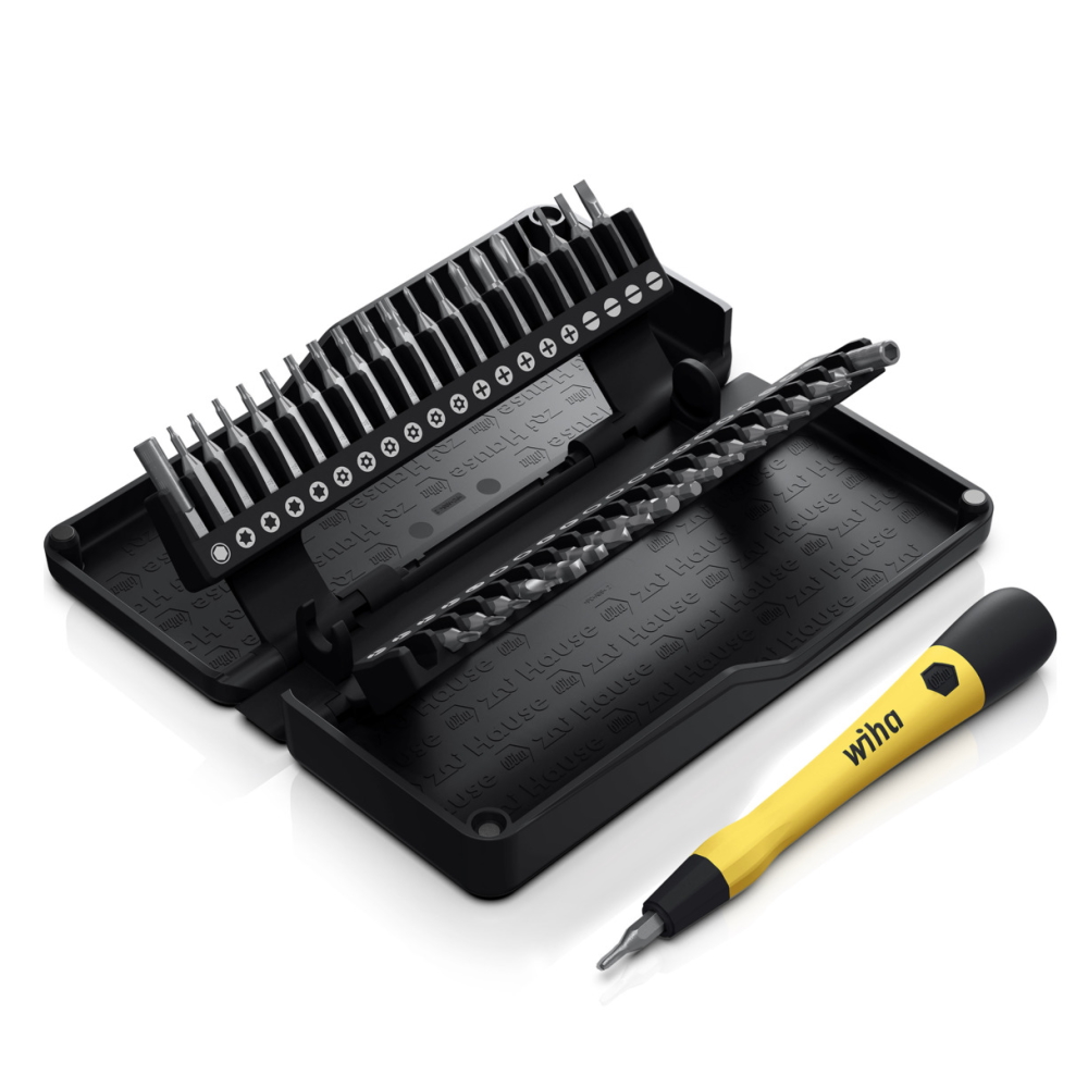 Das Micro Bit Set von Wiha zai Hause – perfekt für alle Micro-Verschraubungen und filigranen Anwendungsfälle, bei denen Fingerspitzengefühlt gefragt ist.