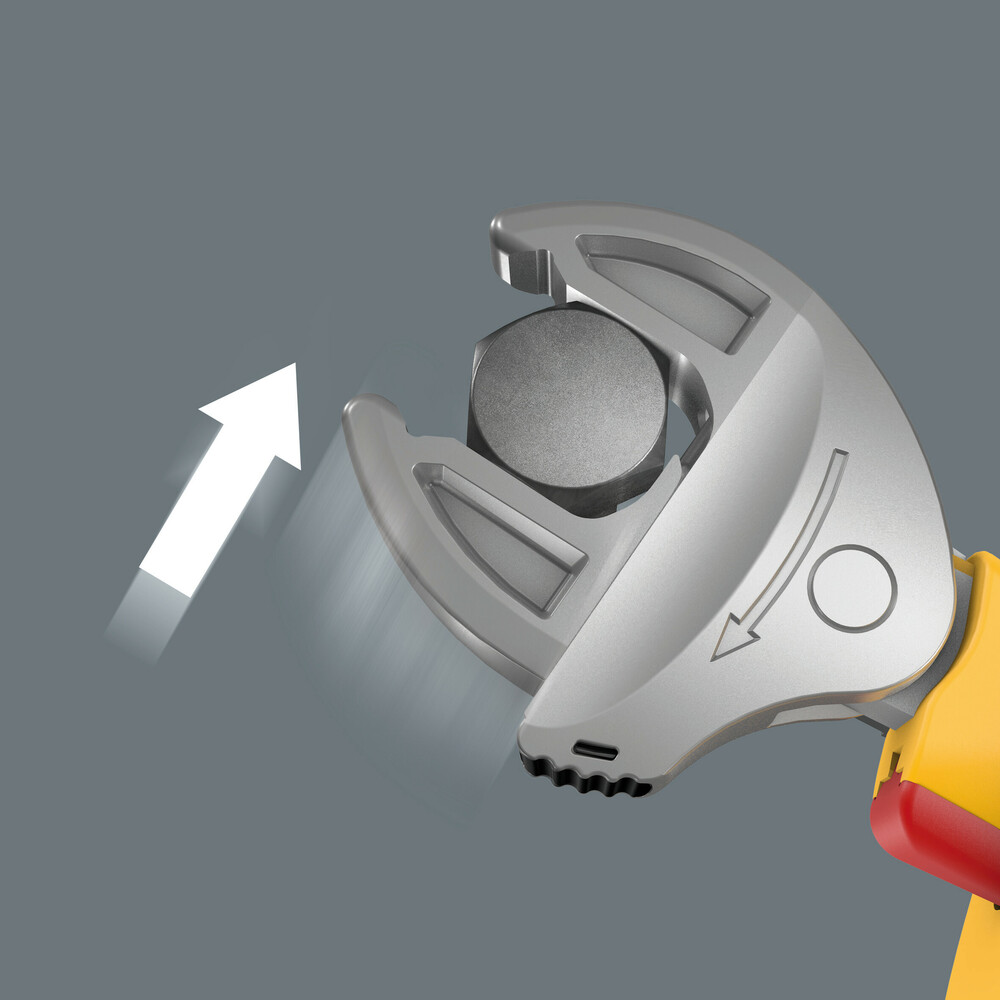 Die kompakte textile Box mit vier verstellbaren Joker 6004 VDE deckt alle metrischen und zölligen Abmessungen im Anwendungsbereich von 7 bis 19 mm bzw. 1/4" bis 3/4" ab Stückgeprüftes Werkzeug mit isolierten Griffen für sicheres Arbeiten bis 1.000 Volt mit Abrutschschutz und Schiebefunktion für kontaktloses und sicheres Öffnen der nichtisolierten Backen Automatisches und stufenloses Greifen von Sechskant-Schrauben und Muttern Hebelmechanismus beim Greifen vermeidet Abrutschen und Beschädigungen