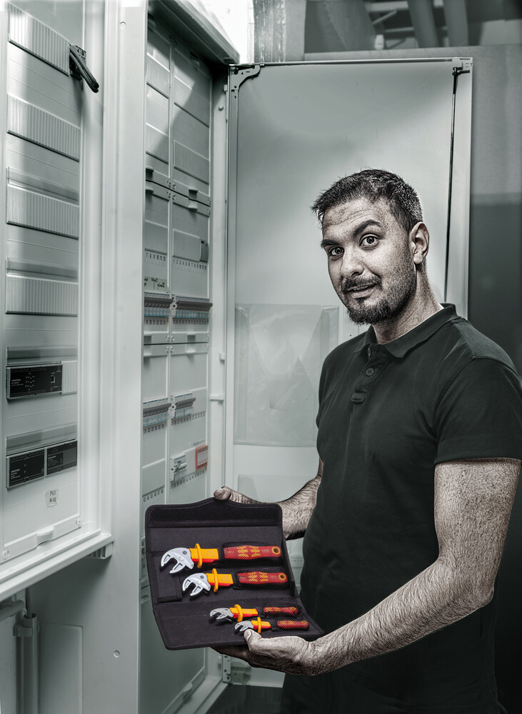 Die Ein-Schenkel-Konstruktion in Verbindung mit der Ratschenfunktion und dem Eckweitenprisma ermöglicht das Arbeiten auch in engen Bauräumen. Der verstellbare Joker 6004 VDE verfügt dank der 2-Komponenten-Kunststoffisolierung über einen haptisch angenehmen Griff. Die Sicherheit wird durch den Abrutschschutz am vorderen Griffende erhöht.
