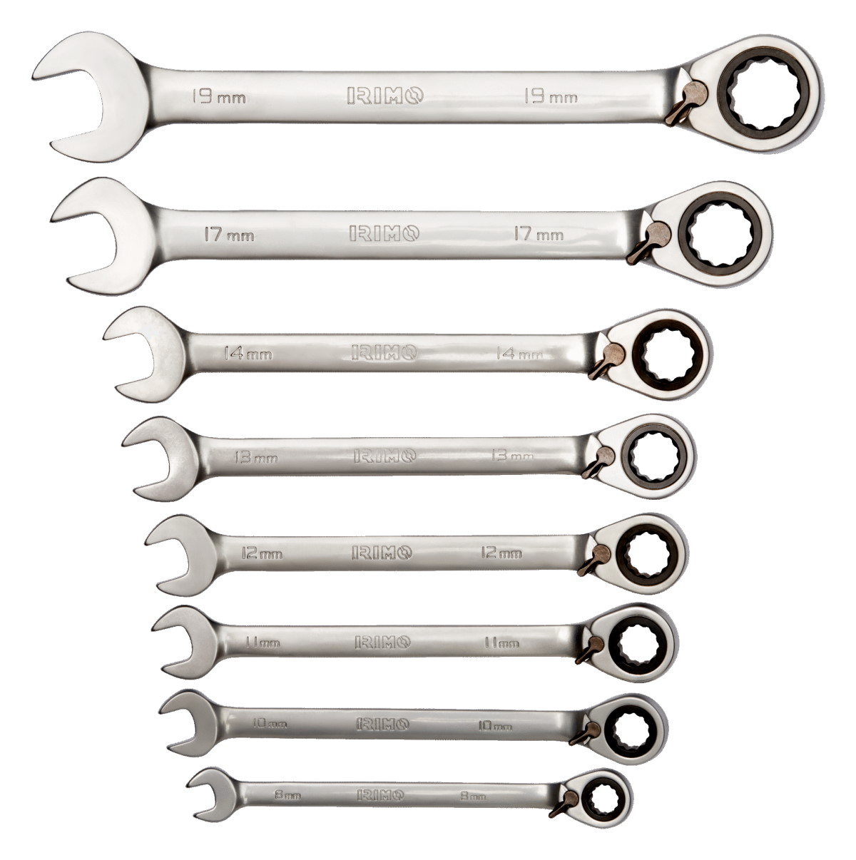 Produktinformationen "Bahco Irimo Knarren-Ring-Maulschlüssel-Satz - 18-8-H - 8-teilig - 8-19"