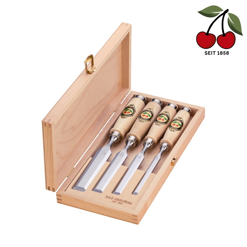Produktinformationen "Kirschen Stechbeitel-Satz Set 1141000 - Holzkoffer Buche - 4-teilig - 10-26 mm"