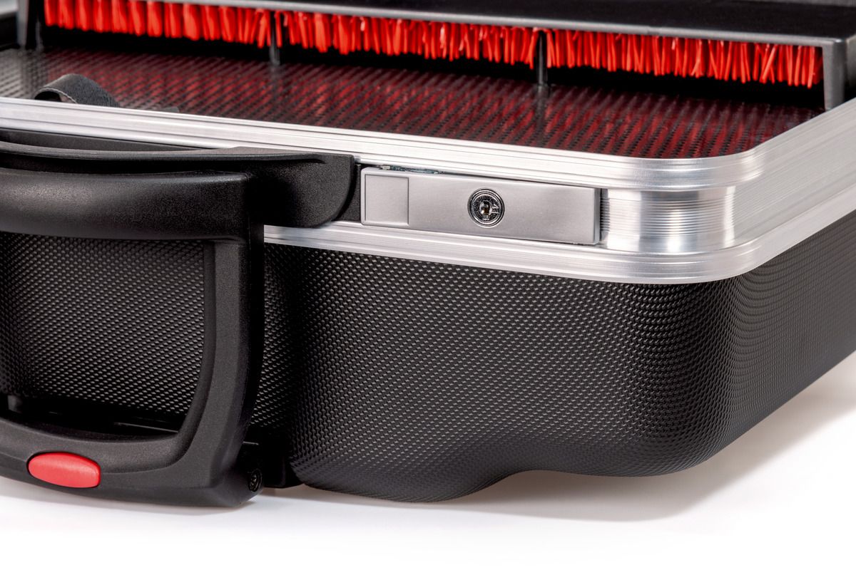 Wie man ihn auch dreht und wendet – im CLASSIC KingSize Roll neo CP-7 von PARAT bleiben die bis 60 Werkzeuge stets an Ort und Stelle. Dafür sorgen die durchdachten CP-7-Werkzeugtafeln aus hochwertigem Con-Pearl®-Material. Zusätzlichen Stauraum finden Anwender, die bei ihren (Service-)Einsätzen viele Werkzeuge transportieren müssen, in der frei unterteilbaren und nun extratiefen Bodenschale (88 mm), die ab sofort noch mehr Platz für noch größere Utensilien vorhält. Ganz neu ist auch der besonders anwenderfreundliche Bodenplattenaufsteller: Dank ihm kann der Anwender sowohl die unten gelagerten Gegenstände als auch die Werkzeuge in den CP-7-Haltern jederzeit bequem erreichen. Einen klaren Mehrwert im Arbeitsalltag bieten zudem die neue Wasserwaagenhalterung, Visitenkartenfächer, Stiftschlaufen sowie das im Kofferdeckel integrierte Dokumentenfach. Und auch die äußeren Werte des Multitalents stimmen: Da die mit einem Doppel-Aluminiumrahmen verstärkte Außenschale aus robustem, rutschfestem X-ABS-Kunststoff gefertigt ist, hält der CLASSIC KingSize Roll neo CP-7 selbst höchsten Belastungen stand. Der Transport des mit bis zu 30 Kilogramm beladbaren Trolley-Koffers geht mithilfe des 4-fach-Teleskopauszugs sowie den jetzt noch größeren Rollen denkbar leicht von der Hand, selbst auf unebenem Untergrund. Natürlich gehören auch Rasterscharniere mit praktischer Kofferdeckelarretierung und Kippzylinderschlösser zur Serienausstattung, die den Inhalt vor unerlaubtem Zugriff schützen.