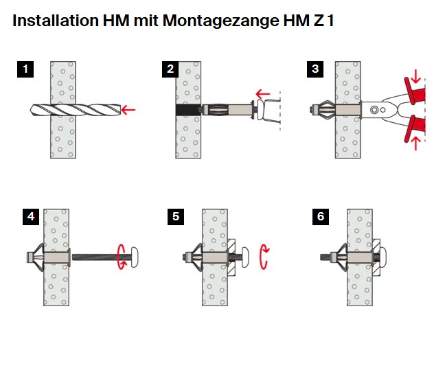 Mit der fischer Heimwerkerzange HM Z 3 sind Sie bestens für die Montage von Hohlraum-Metalldübel HM ausgestattet – für eine schnelle, präzise und komfortable Anwendung.