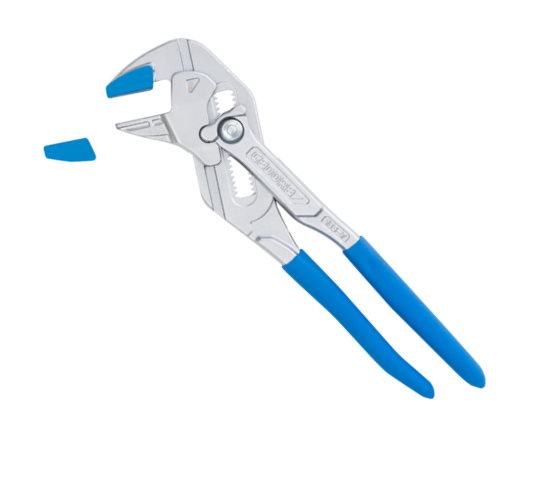 Dank des Schiebemechanismus ist die Einstellung der Schlüsselweite stufenlos und einfach. Der Zangenschlüssel bietet zudem eine spielfreie Anlage, die die Gefahr von Kantenbeschädigungen minimiert – ideal für die schonende Montage von oberflächenempfindlichen Verschraubungen, wie z. B. verchromten Armaturen.