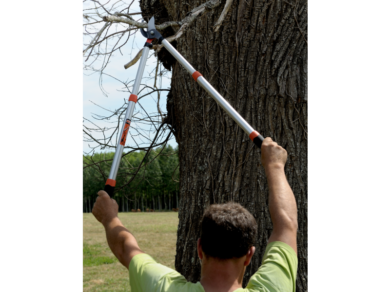 - Teleskop-Astschere mit silbernen Aluminium-Griffen, auf 70 - 90 cm ausziehbar