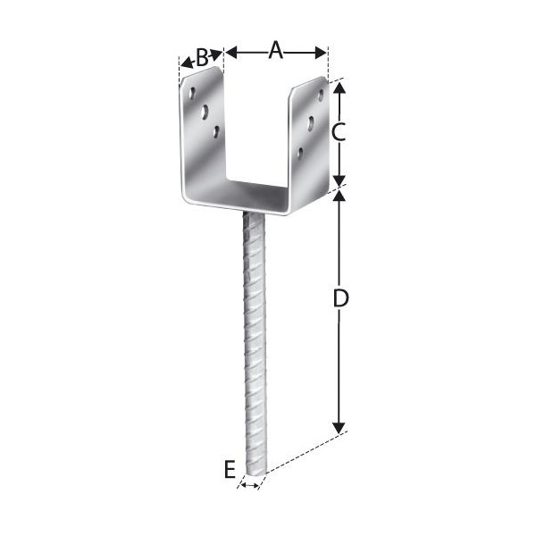 Produktinformationen "U - Pfostenträger 141 mm - 200mm länge - feuerverzinkt - geriffelte Steindolle"