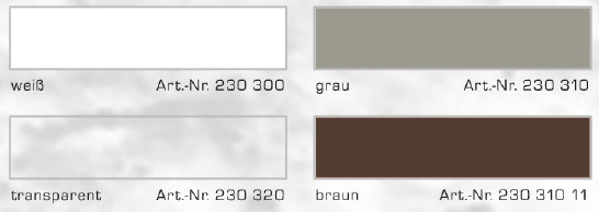 - Farbe: weiß, grau, braun transparent