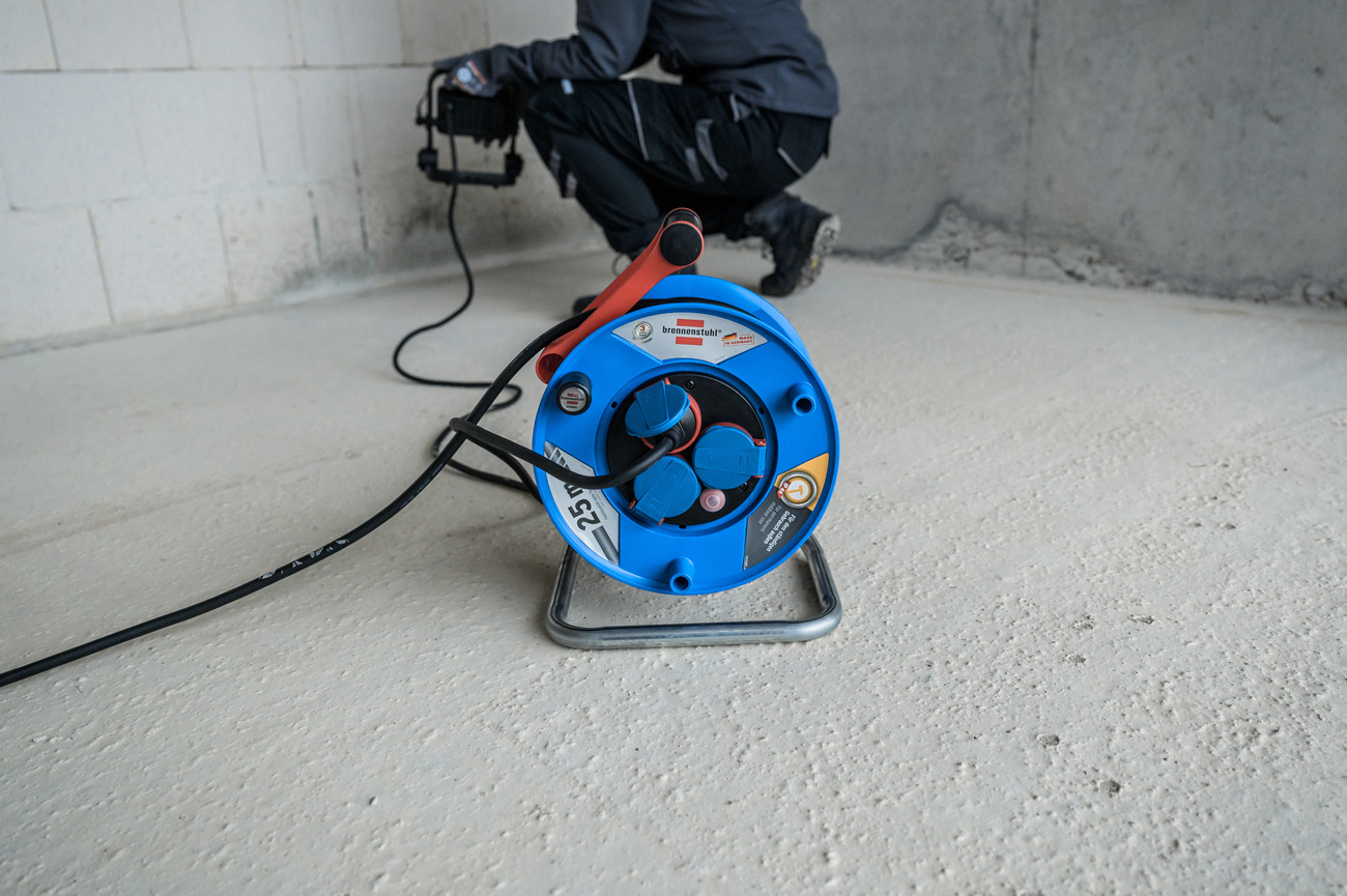 Brennenstuhl Garant IP44 Gewerbe-/Baustellen-Kabeltrommel (25m Kabel in schwarz, aus Spezialkunststoff, Baustelleneinsatz und ständiger Einsatz im Außenbereich, Made in Germany)