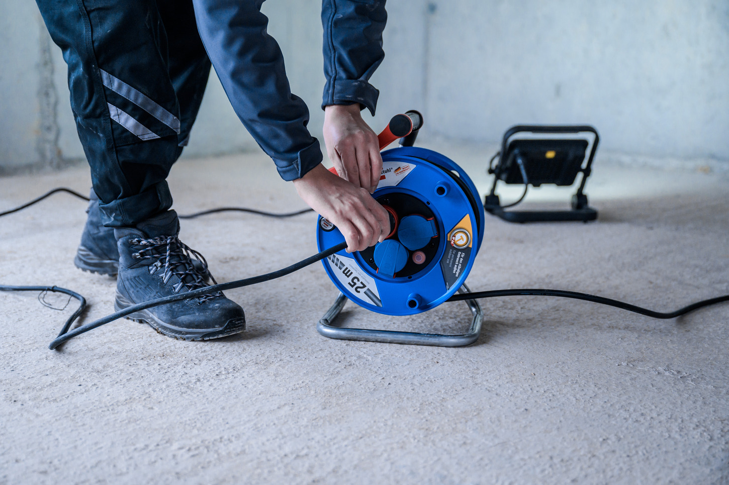 Produktinformationen "Brennenstuhl Kabeltrommel blau - 25 meter - 230V - IP44 - 3 Dosen - 1218350"